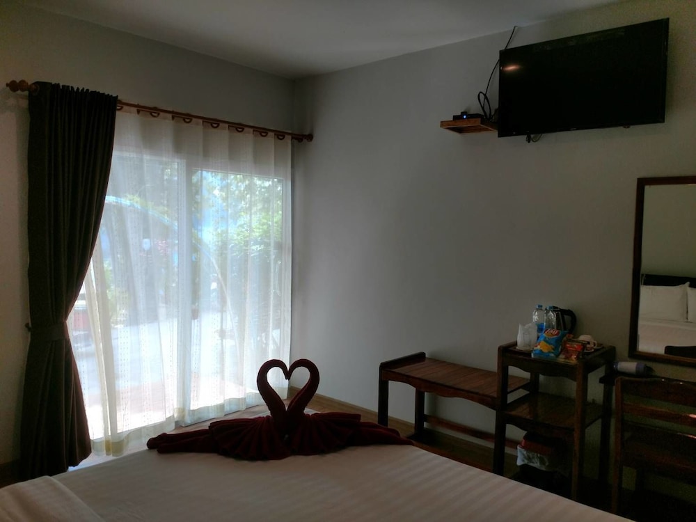 The room was quite clean, the employee friendly and they had a free taxi service. The location was good: Not on the loud walking street but very close to it in a quite side street. The room was changed due to high demand booking. We got the room on the first floor and too many mosquitos in the room.