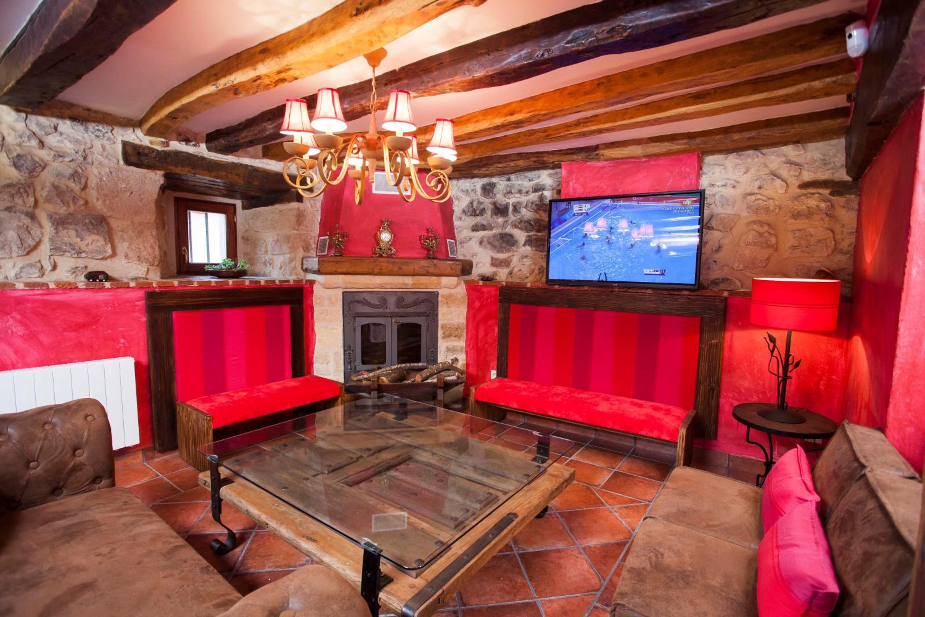 Unwind in the shared lounge featuring a welcoming fireplace and entertainment options. Explore popular activities like skiing and horse riding in the picturesque surroundings of Bisjueces.