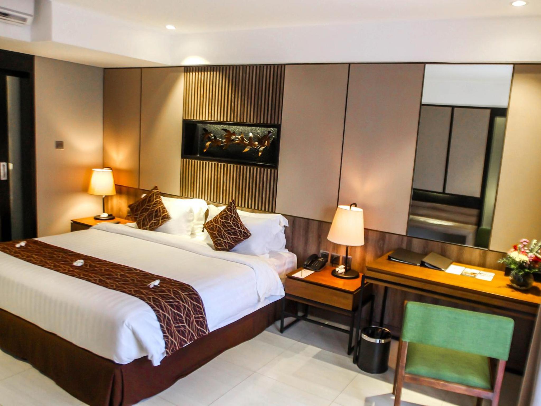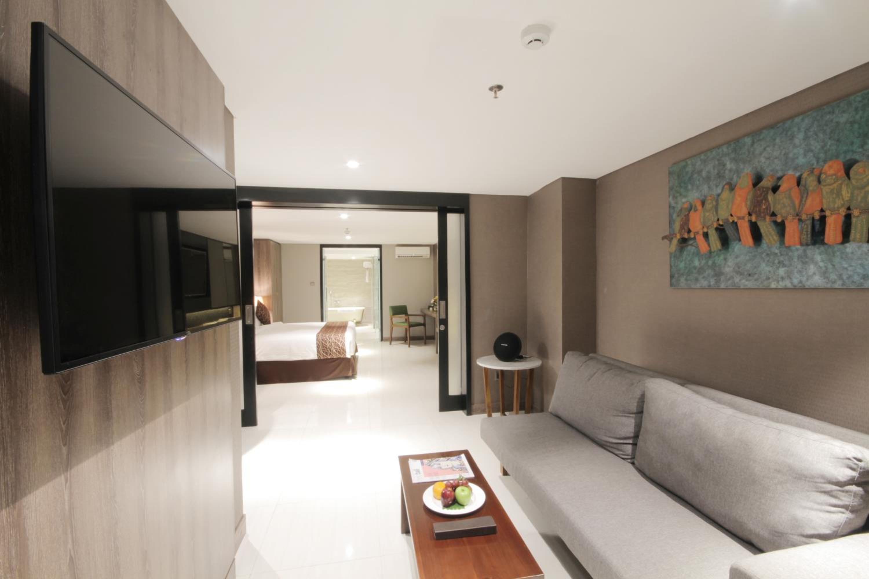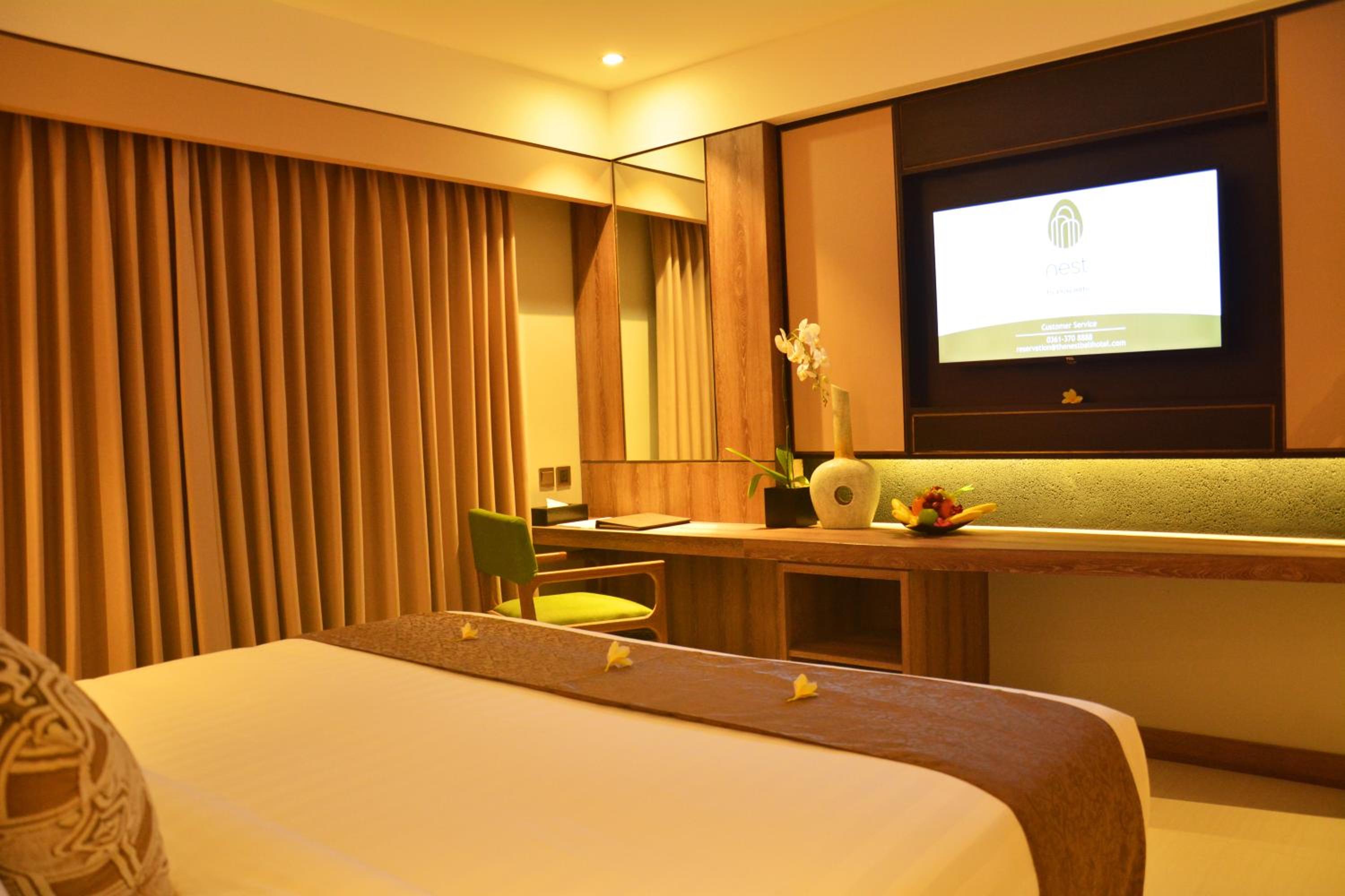Experience comfort and style at The Nest Hotel Nusa Dua with air-conditioned rooms featuring modern amenities like a flat-screen TV, minibar, and private balcony.