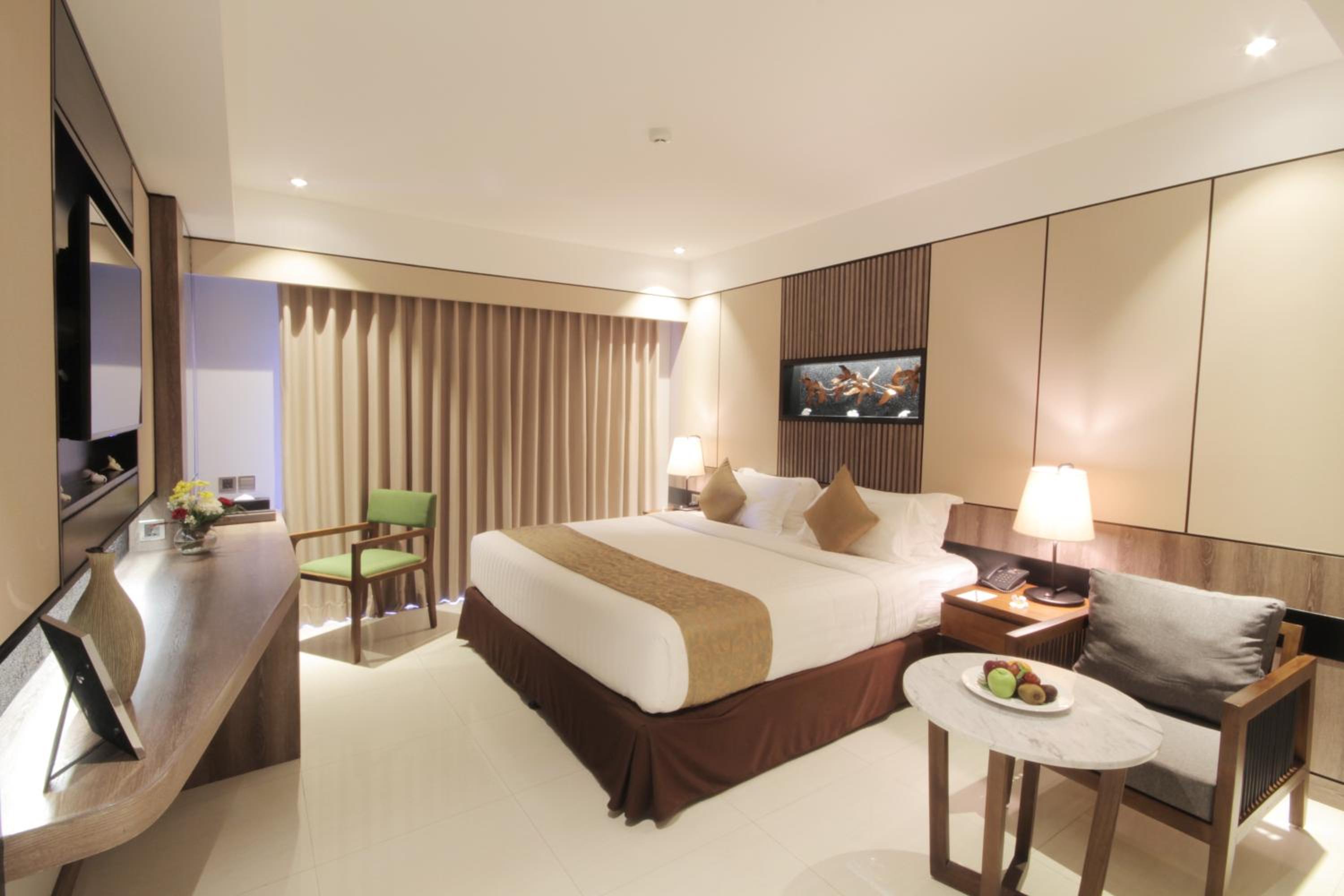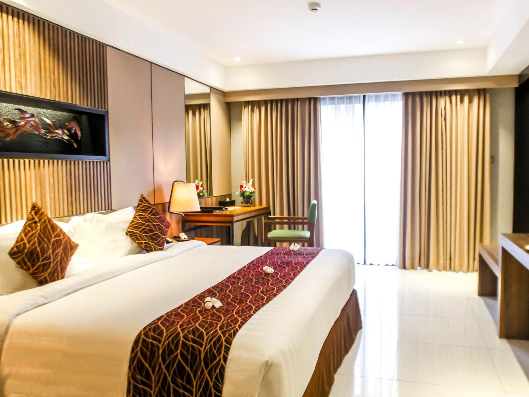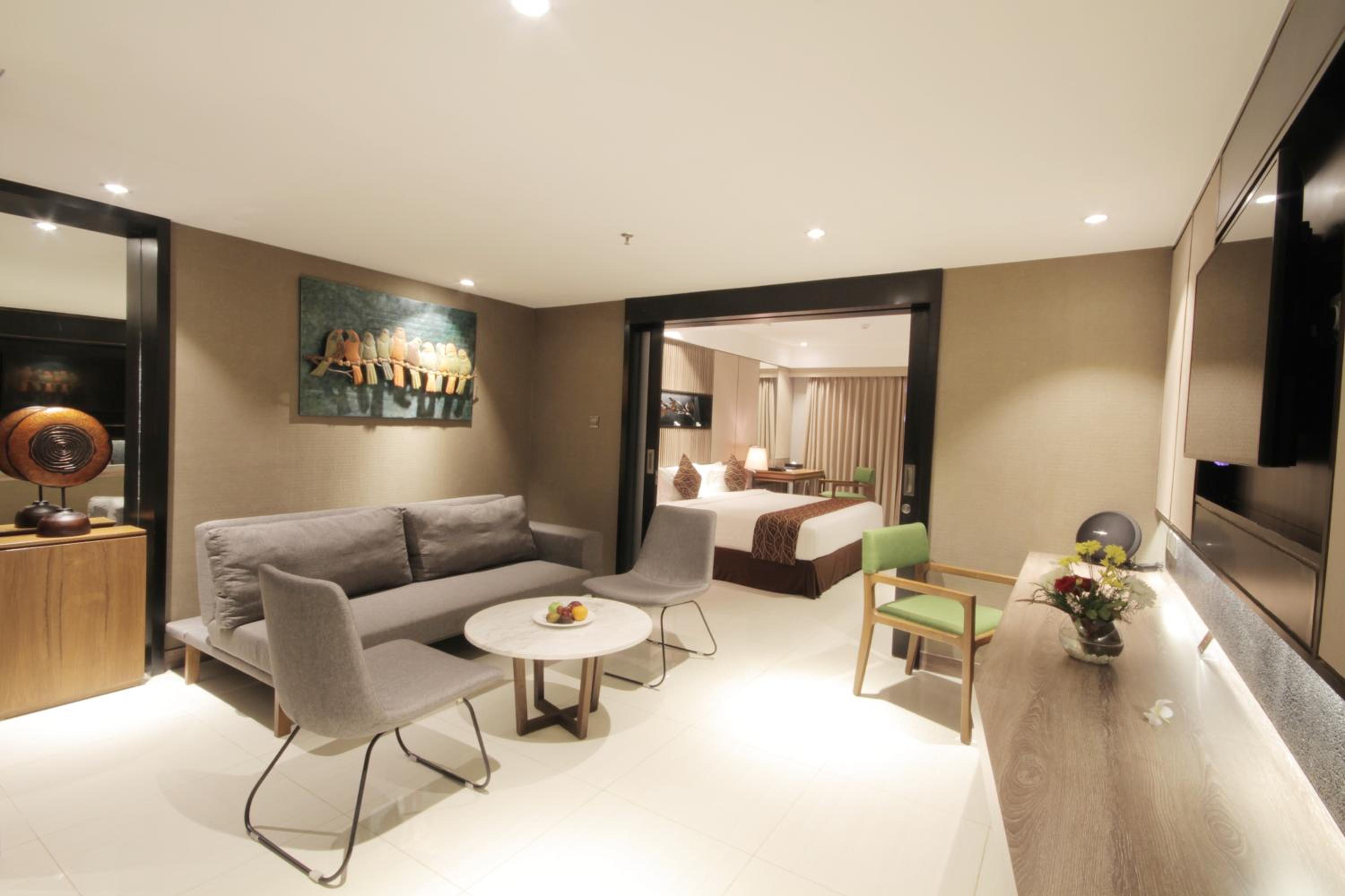 Experience comfort and style at The Nest Hotel Nusa Dua with air-conditioned rooms featuring modern amenities like a flat-screen TV, minibar, and private balcony.