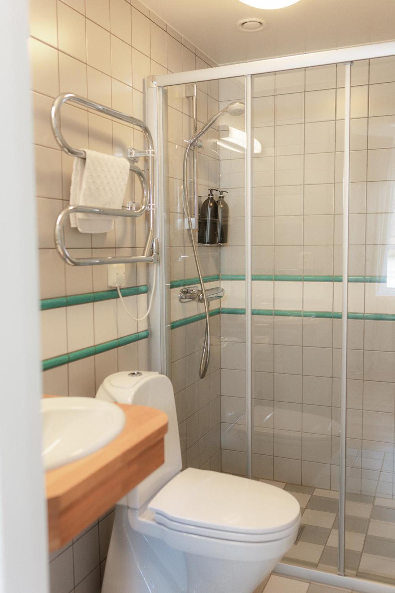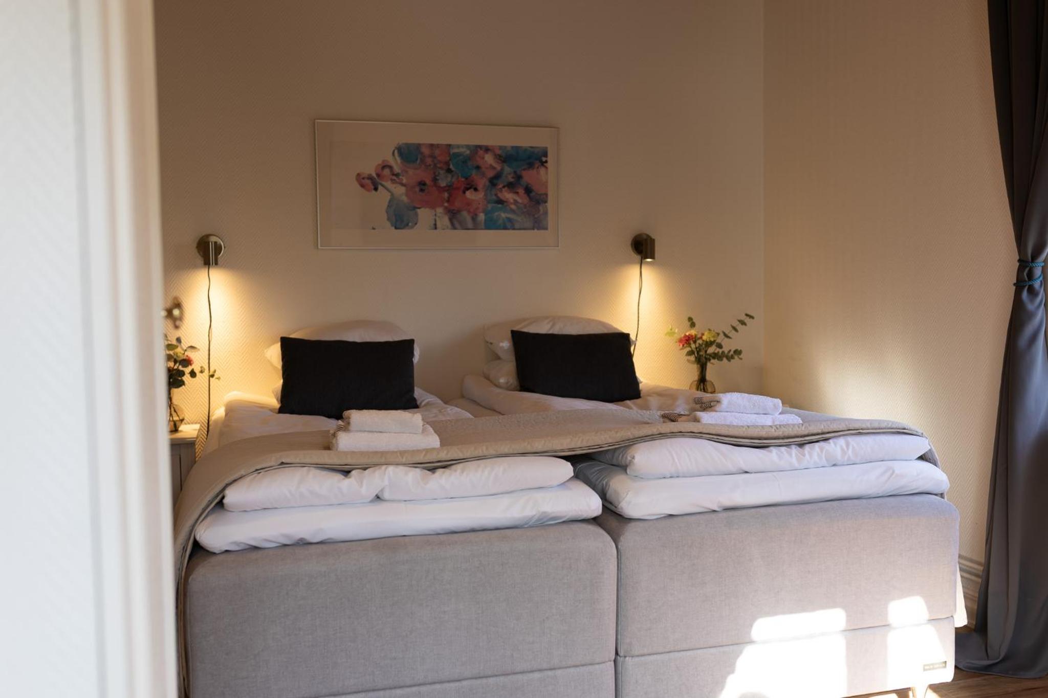 Rent, fräscht och mysigt inrett rum, och vi sov otroligt gott allihop, även barnen i den bekväma bäddsoffan.