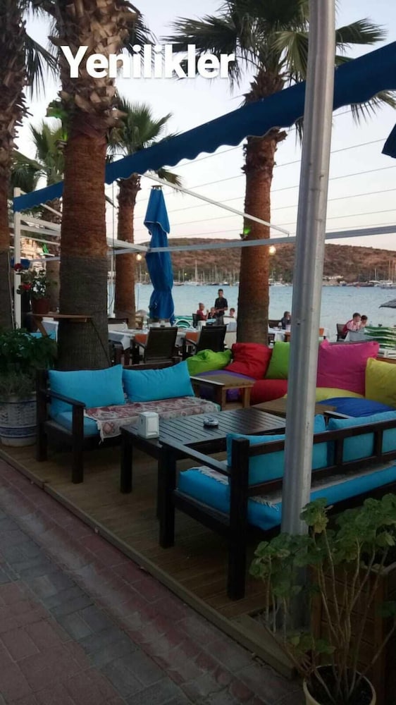 Menüdeki fiyatlar çok yüksek,2 mini üçgen dilim karpuz ve peynire 20 TL alınca otelde çay dışında tüketim yapmadık.Personel sayısı çok , güler yüzlüler ama iş bilmiyorlar.Menemen yapmayı bile ben tarif ettim.Sıcak çaya da hasret kaldık...TV çalışmıyordu,girişte 1 saat sonra teknik servis gelecek dediler,gelmedi,2 saat sonra sorduk,yine 1 saat sonra yanıtını aldık,hiç gelmedi :) Şampuan dahi vermiyorlar...İlk gün açık büfe kahvaltı vardı,sonrasında tabakta verdiler...Ve Bodrum bitmiş,varoş -paçoz insanlarla dip dibe idik...UCUZ ETİN YAHNİSİ YAVAN OLDU !