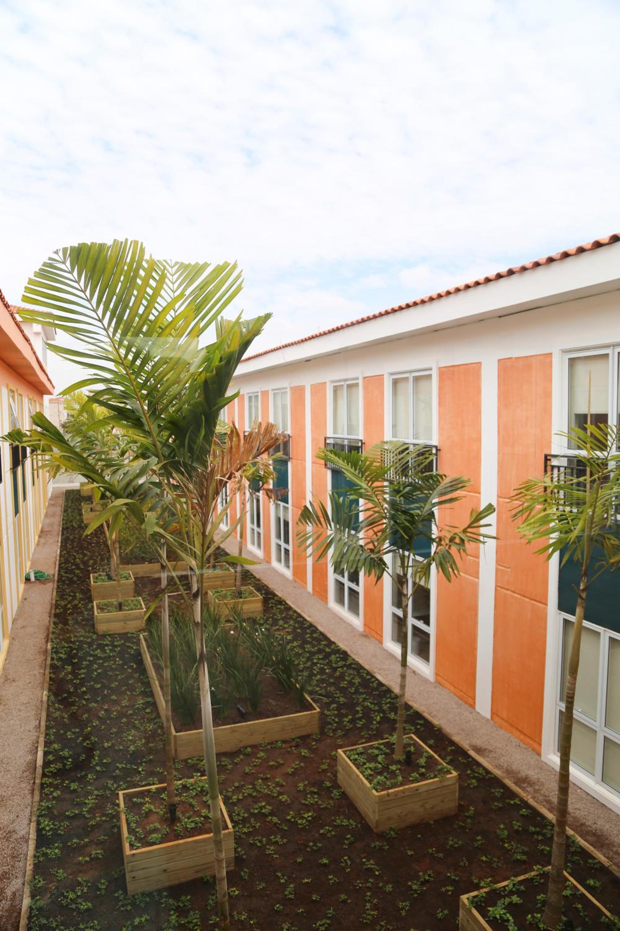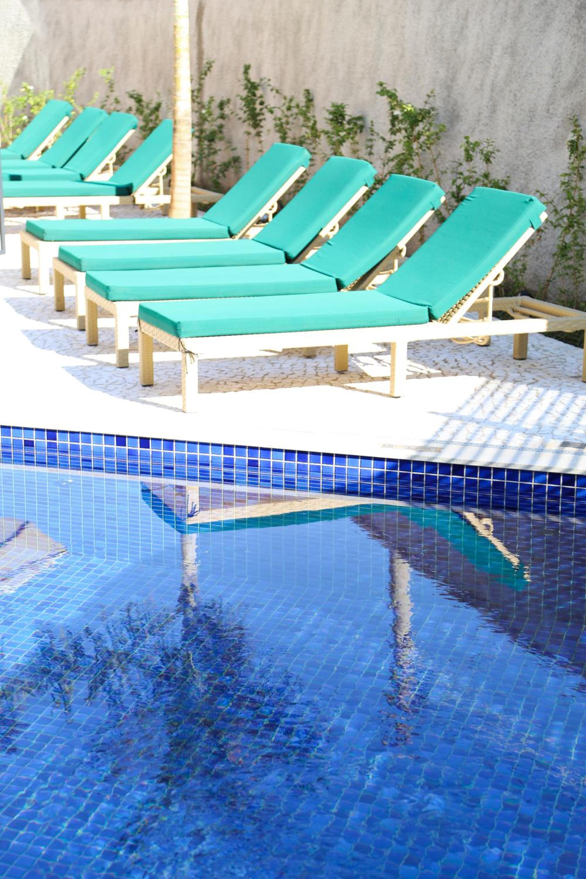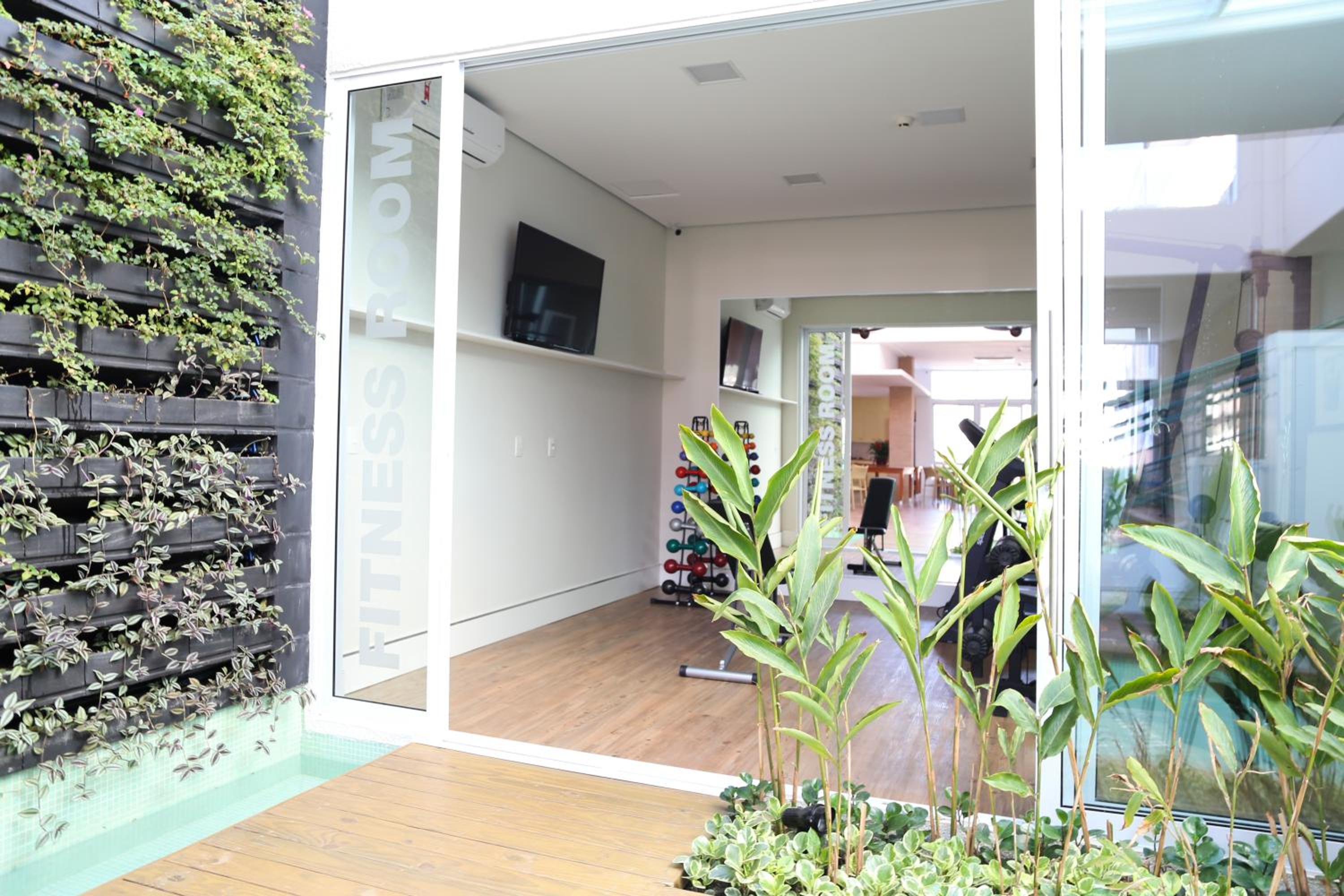 O quarto não tinha vista, apenas a visão limitada de um jardim interno. A piscina tinha muito barulho de máquinas.