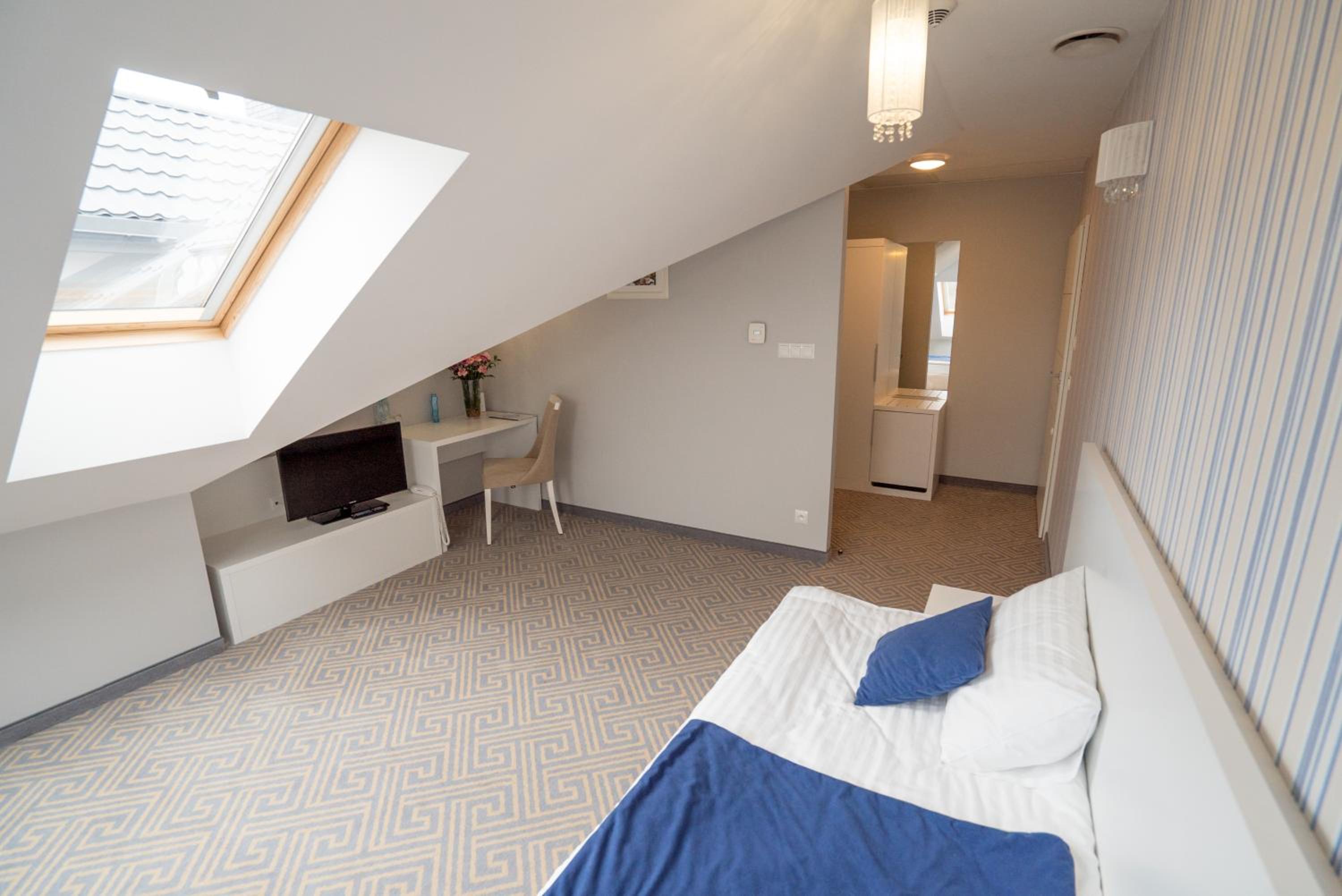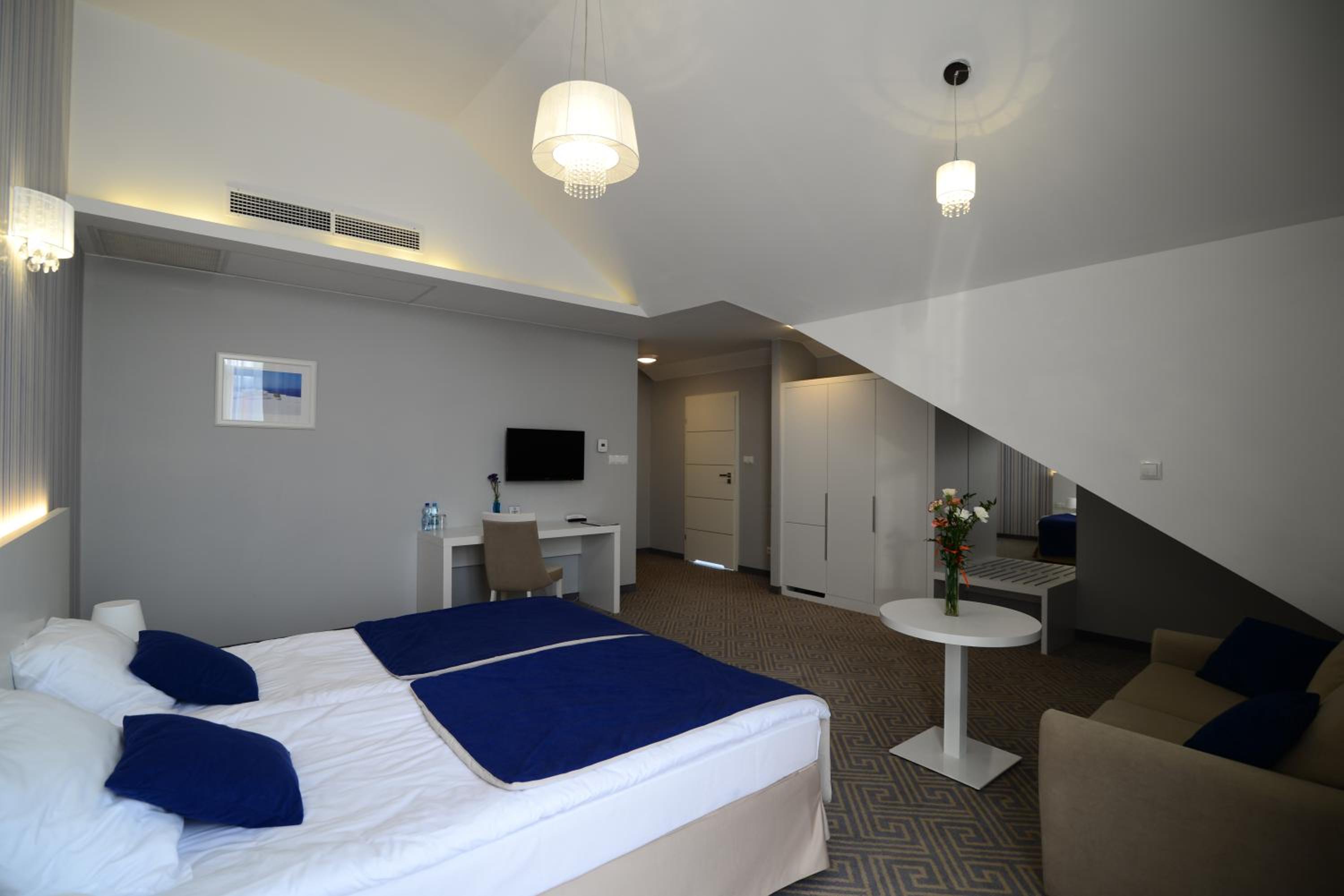 Bardzo duży pokój, w takiej części cichej, więc mimo że była duża impreza na 200 os. to nic nie było słychać. Wanna :) dużą przestrzeń w pokoju. Świetne na spędzenie czasu w dobrych warunkach.