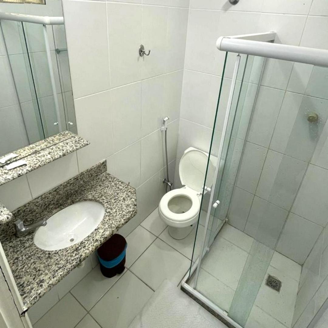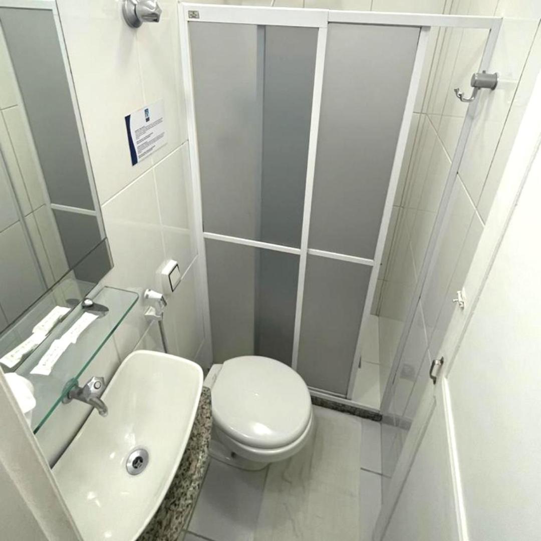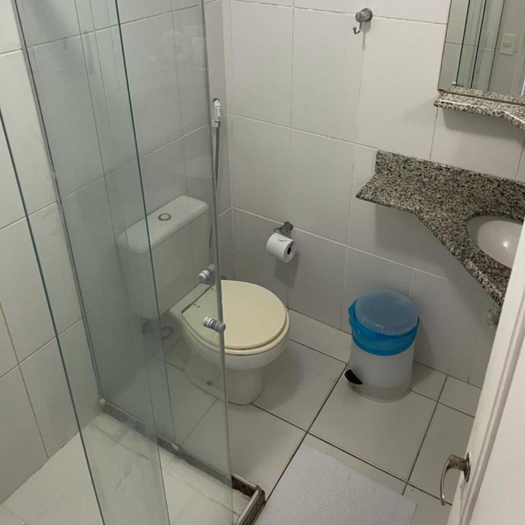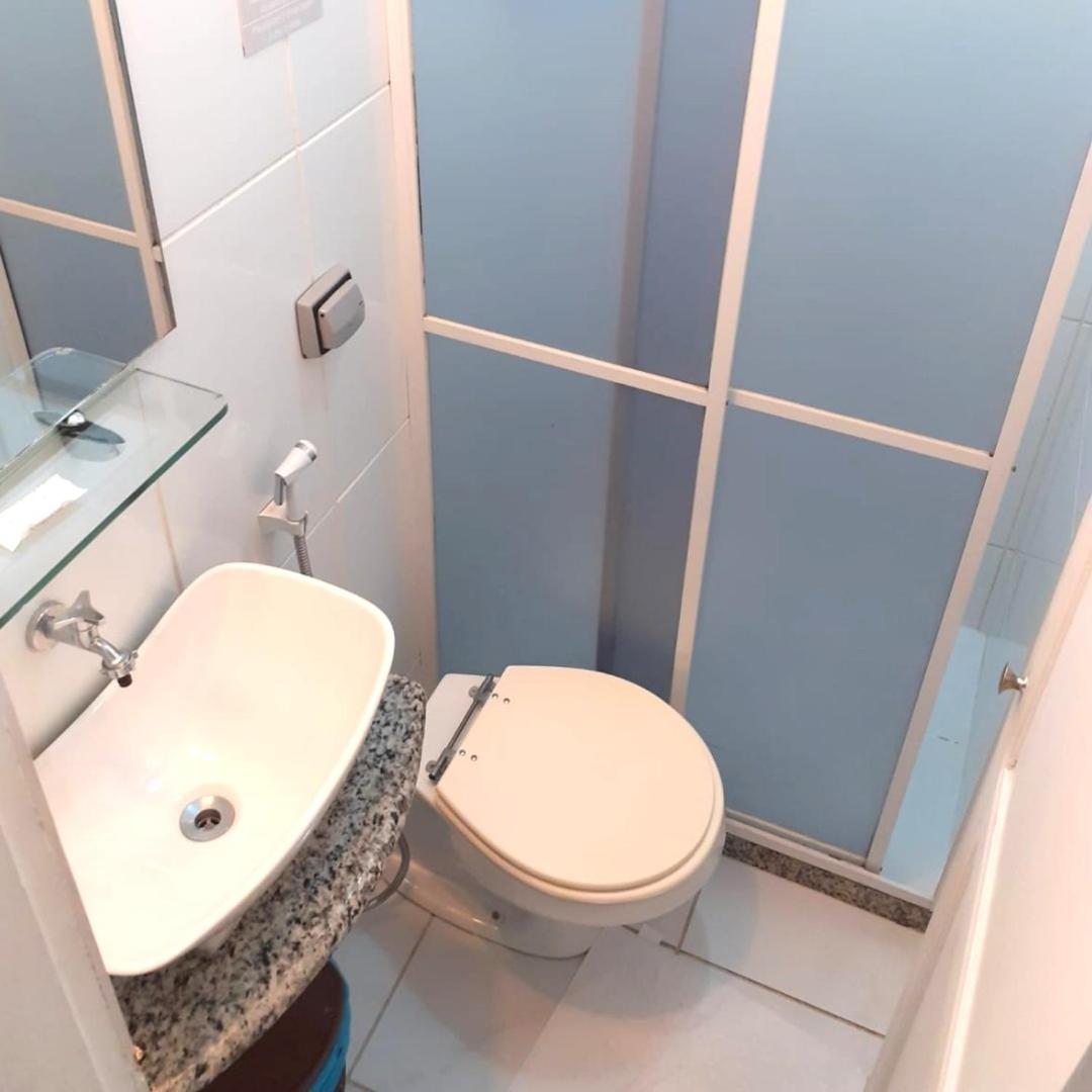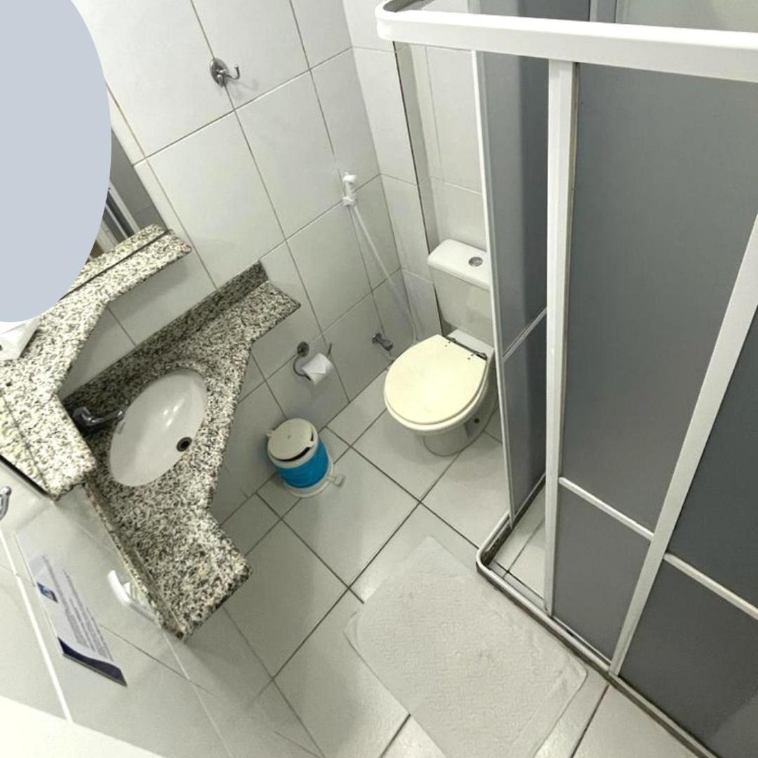 Banheiro muito pequeno. Janela dando vista a outros espaços. Sem local para estender roupas molhadas. Sem local para tirar areia dos pés ao chegar da praia.