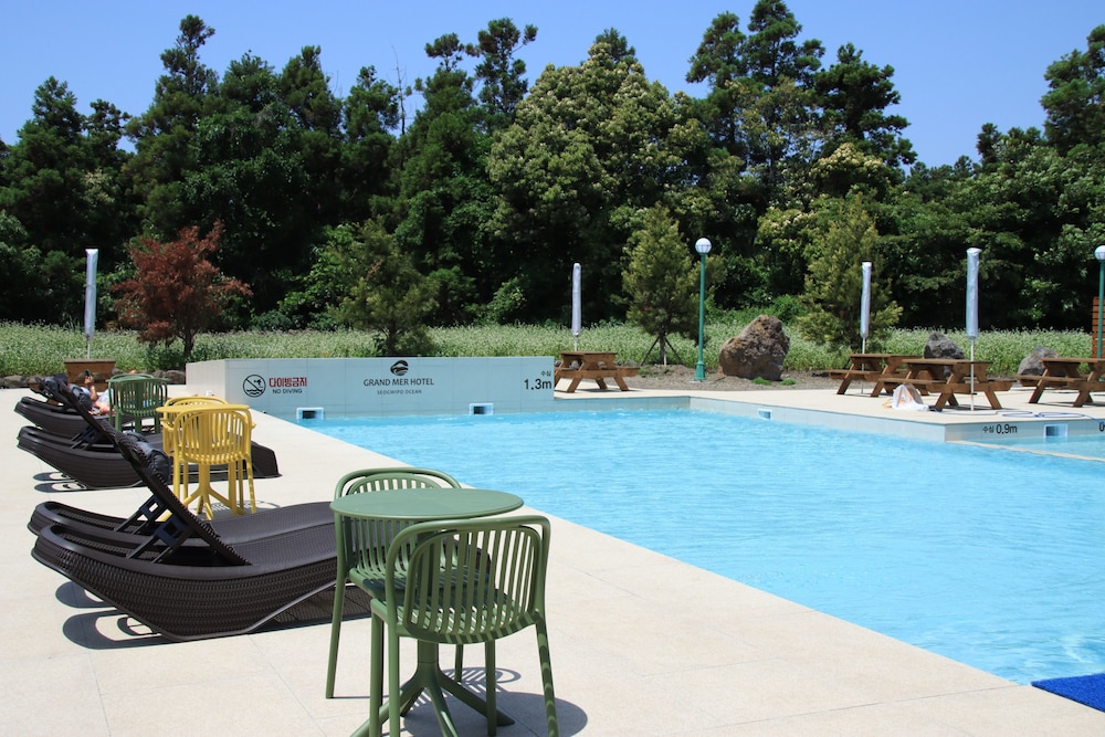 Indulge in a refreshing dip in the seasonal outdoor pool or soak up the sun lounging poolside during your stay at Grand Mer Hotel Jeju.