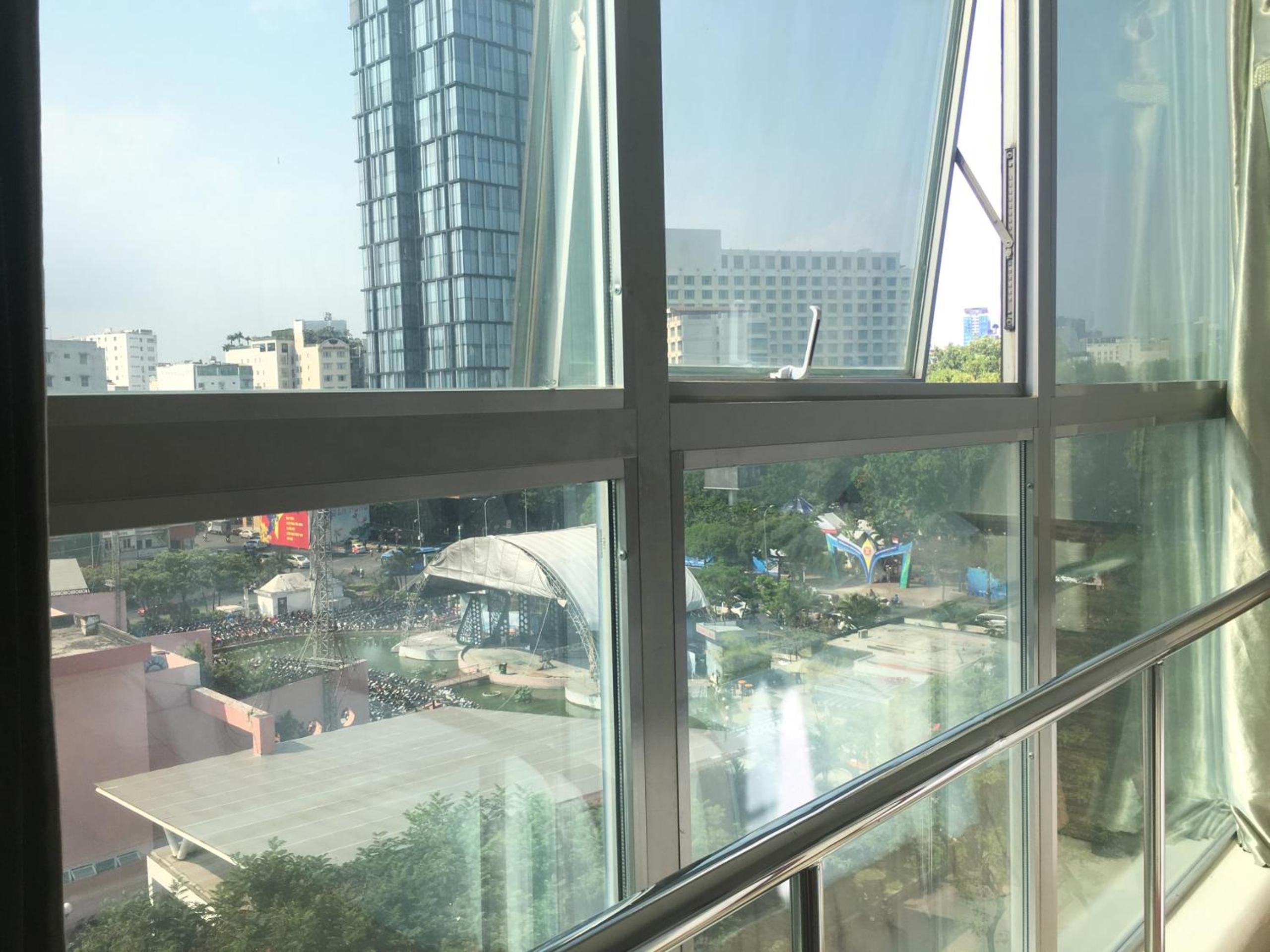 Tourist part of downtown near BinhTahn market and across from a park. Clean place with nice staff and a comfortable room.