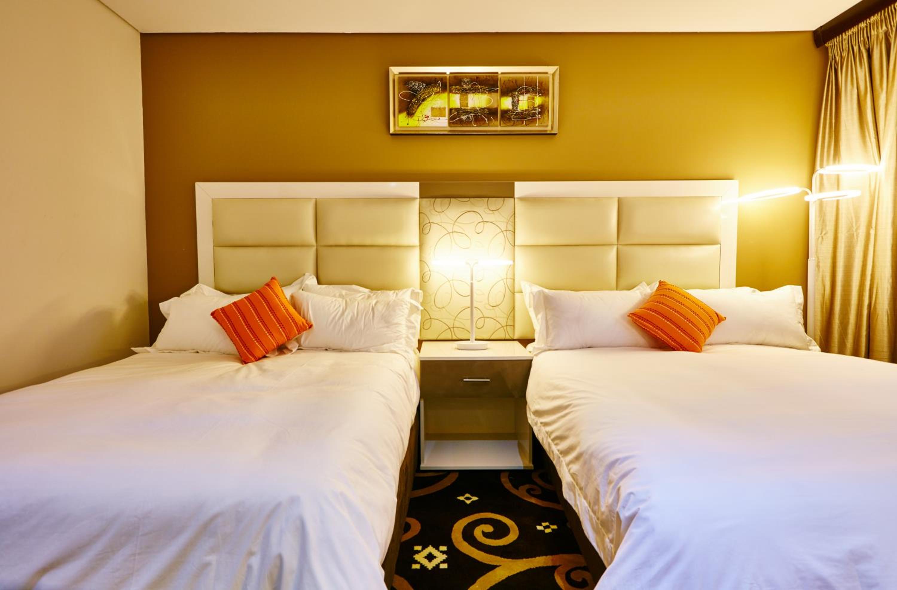 Indulge in the comfort of our air-conditioned rooms equipped with modern facilities like flat-screen TVs, refrigerators, and complimentary toiletries. Some rooms even offer stunning city views for a truly unforgettable stay.