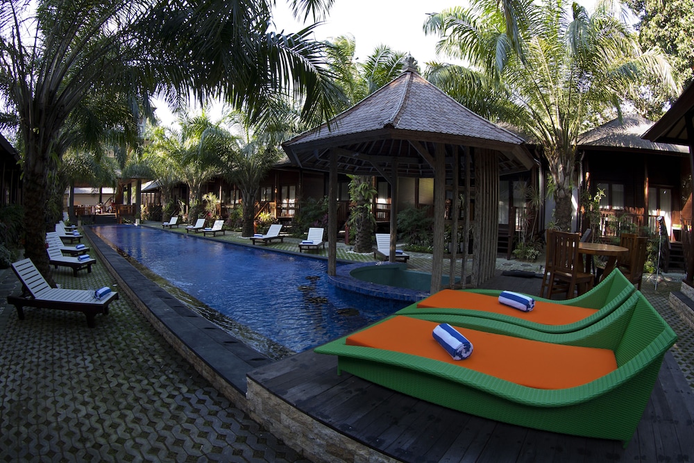 amazing place , very secluded and nice chalet , the room was high quality with nice furniture and the bathroom was a surprise as it was an open air one - loved the stay . the swimming pool the design and architecture was very well done . the hotel is a bit secluded so if you plan to do anything outside you will need to get a driver . they got us a normal taxi to the airport with no ripping off . lombok can be very tricky with drivers and tricky people waiting outside hotels. this one was great .