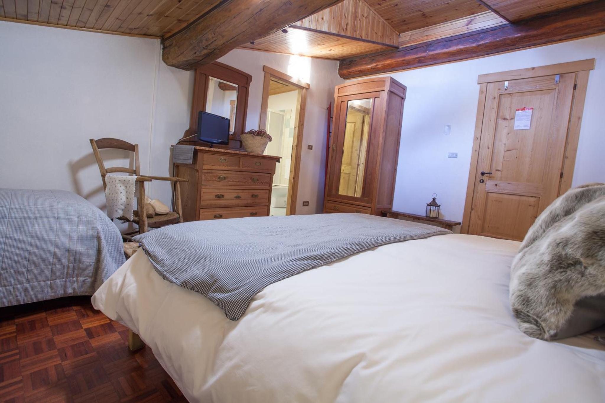 Cozy Alpine Accommodation: Hotel Funivia offers Alpine-style rooms with free Wi-Fi, showcasing stunning Mont Blanc views. Each room is elegantly decorated with wooden furnishings and equipped with a flat-screen TV for your entertainment.