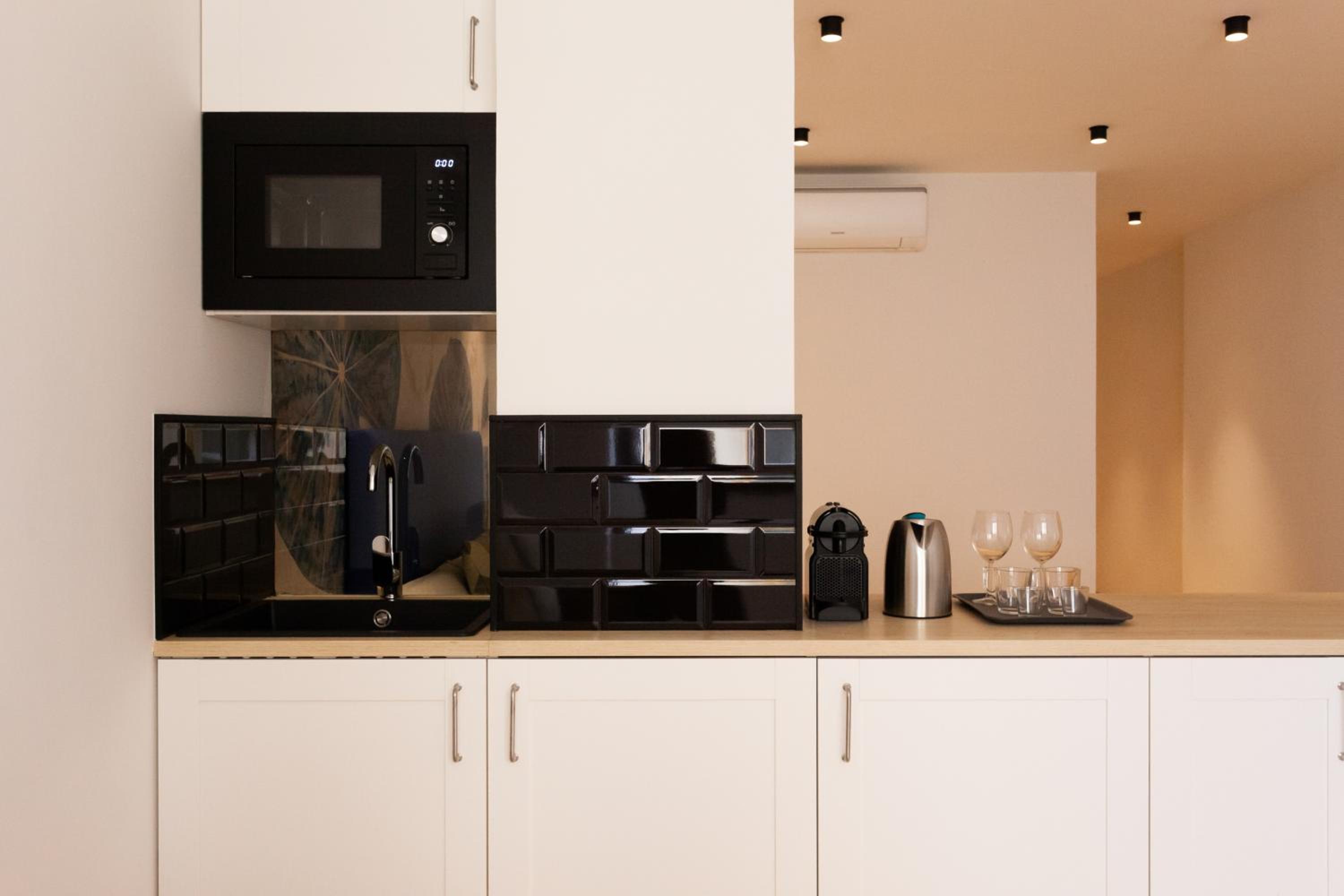 La posizione centralissima. La camera è dotata di qualche stoviglia, microonde, macchina del caffè e frigobar. Camera piccola ma ben equipaggiata. Personale disponibile e carino.