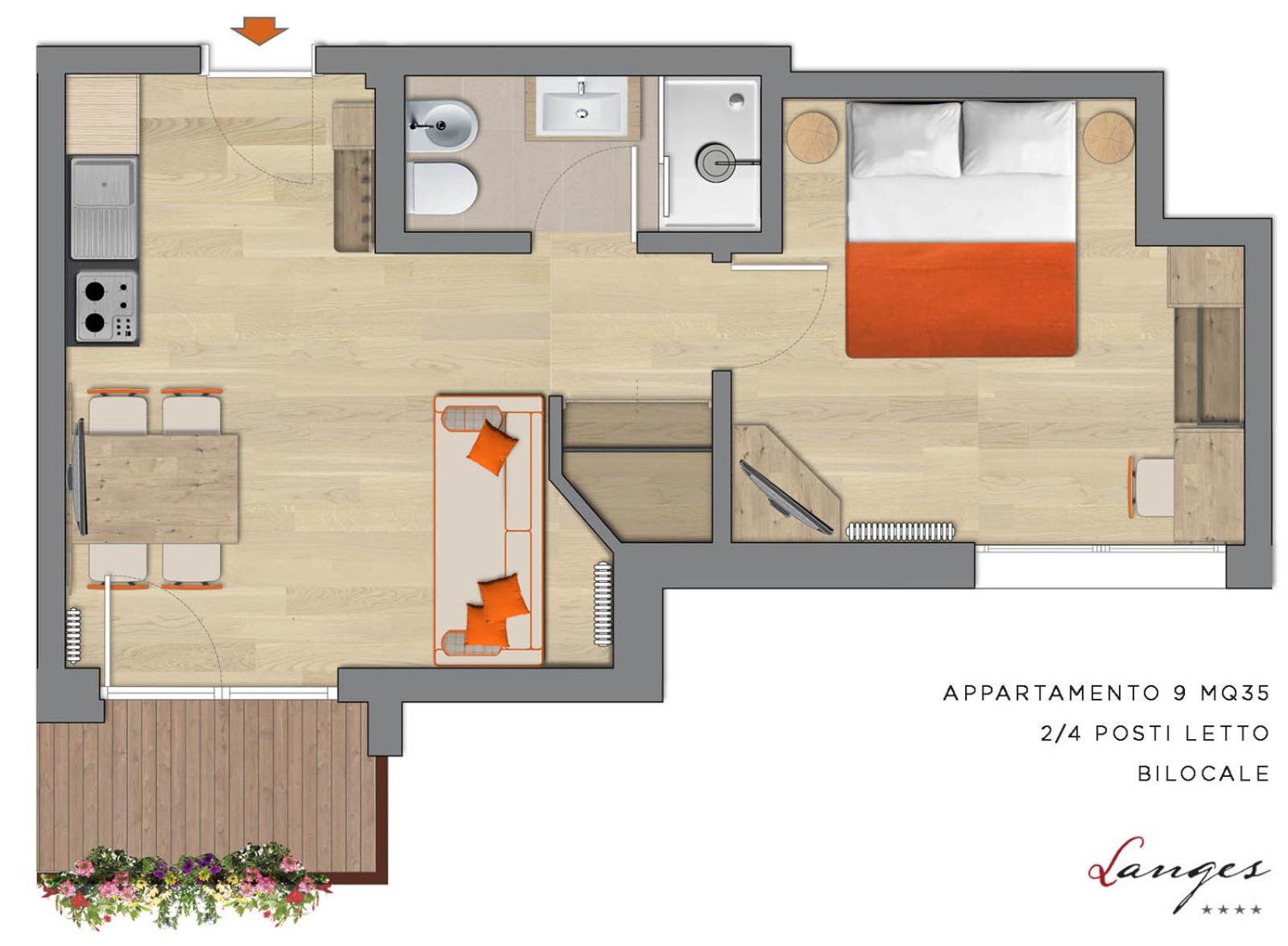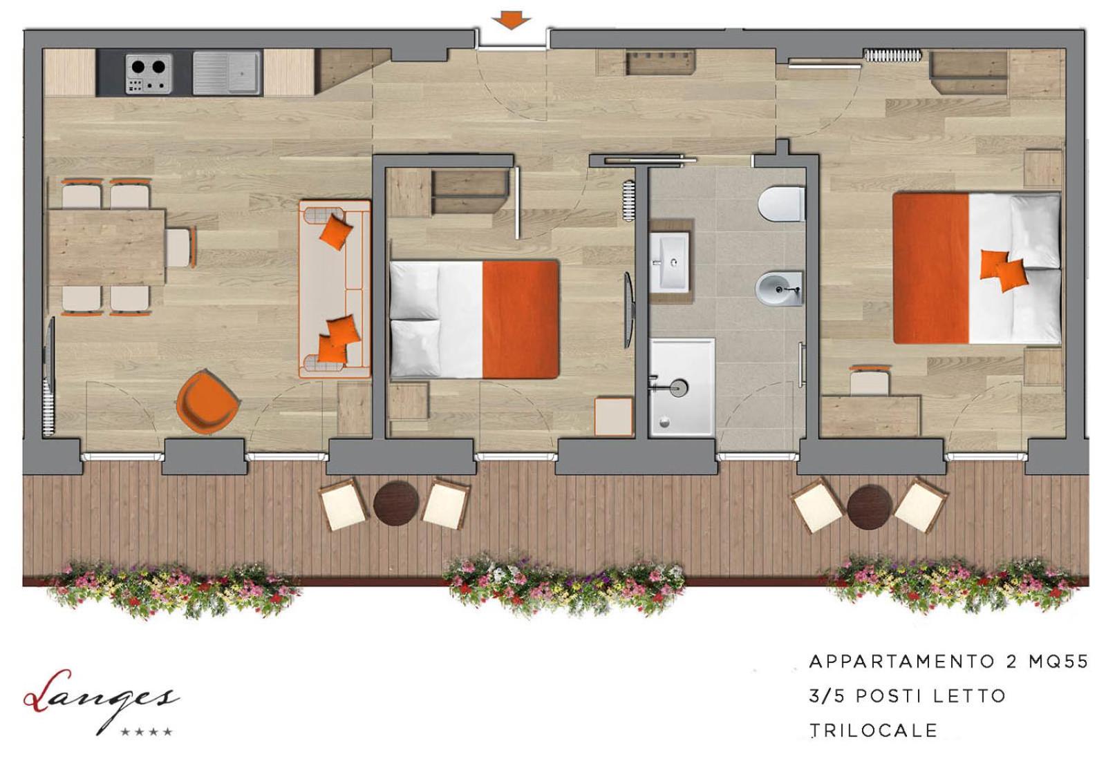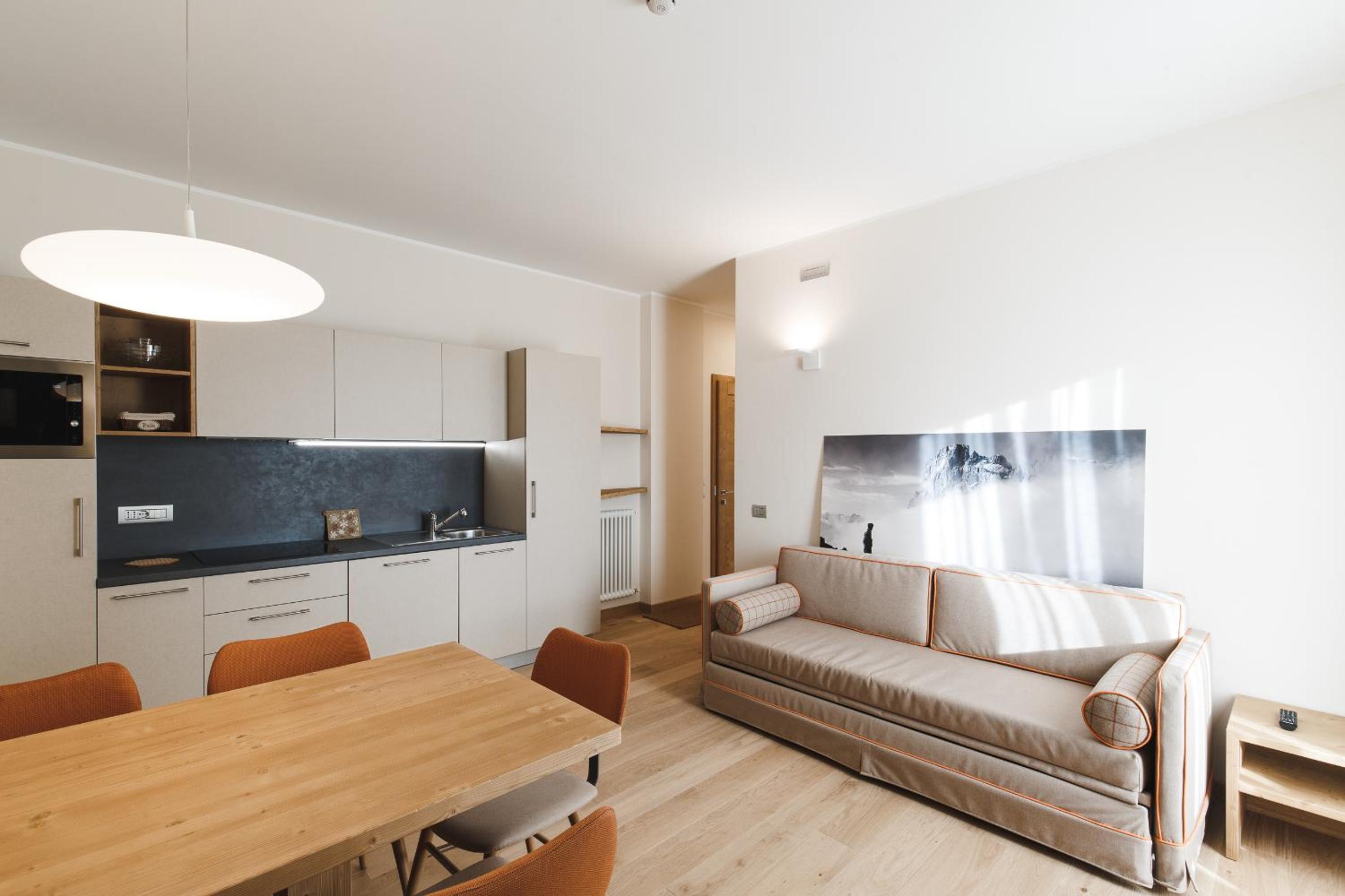 Residence Langes, centrally located in San Martino di Castrozza, offers stunning views of the Pale di San Martino mountains. The fully equipped apartments, some with balconies, provide a comfortable stay with included bed linen and towels.