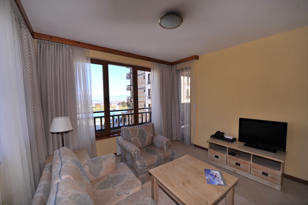 I visited Pirin Golf during the winter. I booked 2 room apartment which looked very well on the pictures, however the place we were given was different and unfortunately smaller. Thew rooms were small and the living room was a bit cold. Temperature barely reached 20 degrees Celsius. Breakfast is located at about 1.5 kilometers from the apartment buildings which is a bit far for early morning winter walk. The hotel provides transport, but you have to pick it up from the main building. Not a bad place, but there are better for that money.