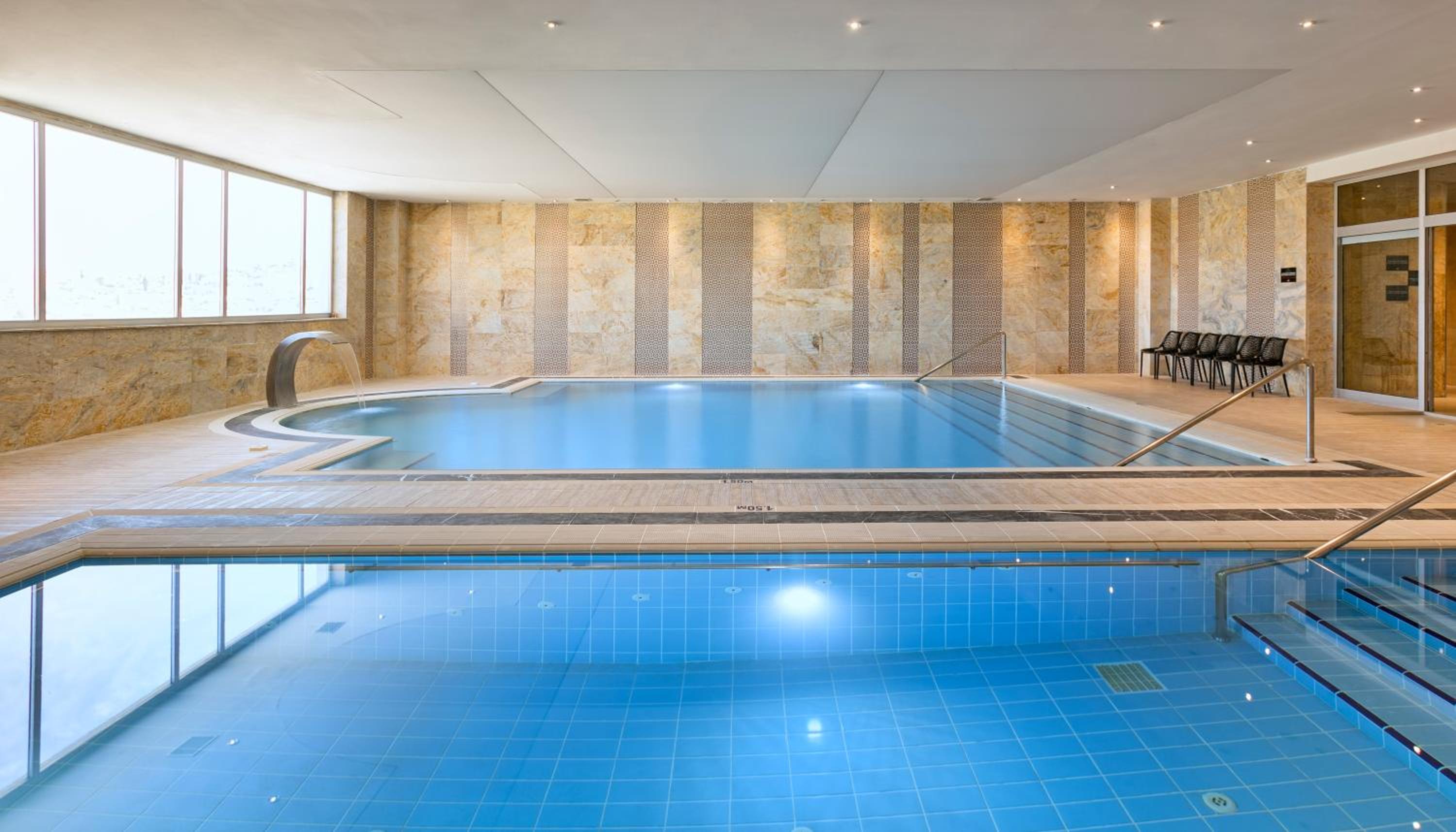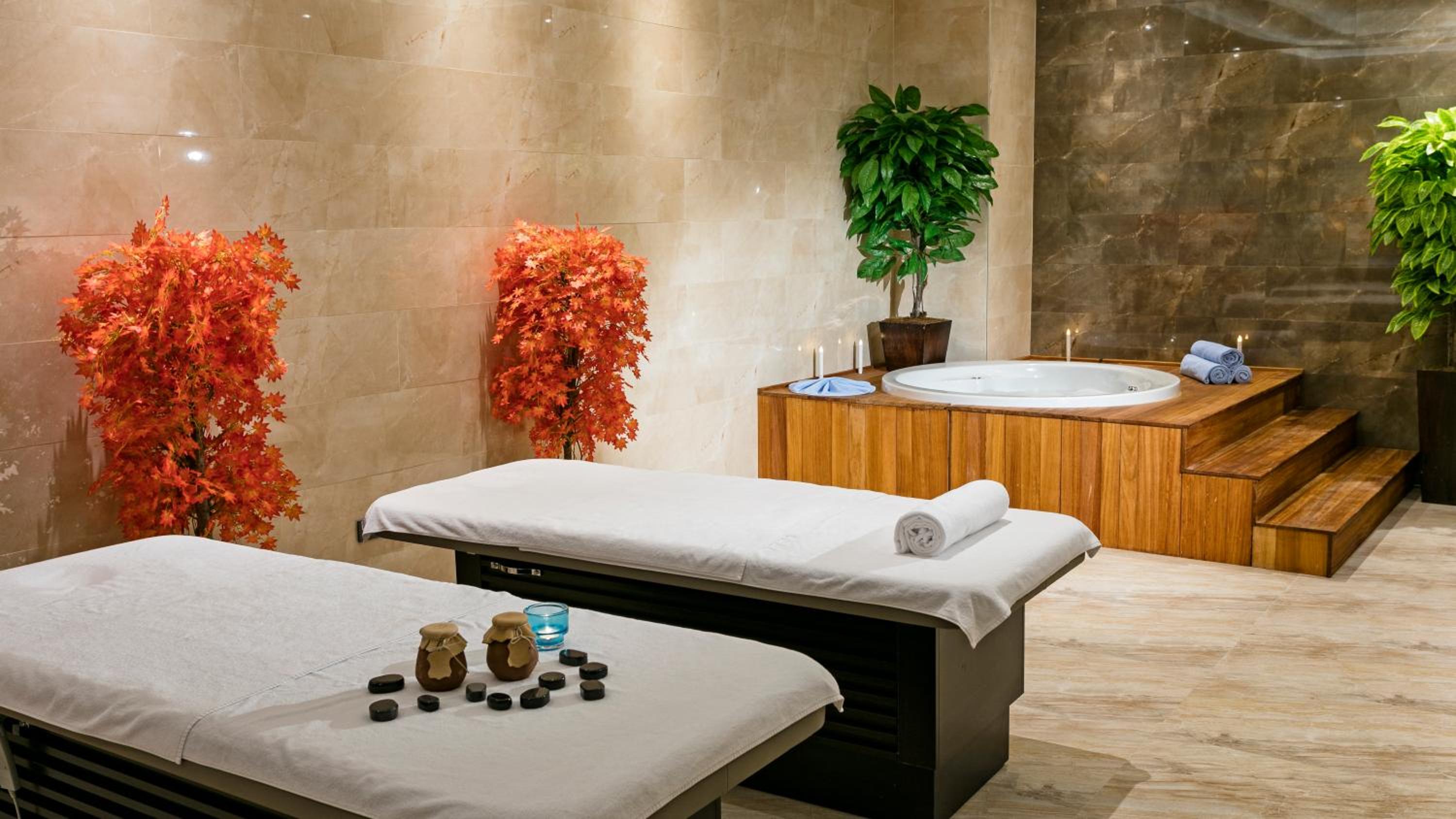 Grannos Thermal Hotel & Convention Center offers a range of luxurious amenities including a sauna, hot tub, outdoor and indoor pools, and a hammam for a truly relaxing stay.