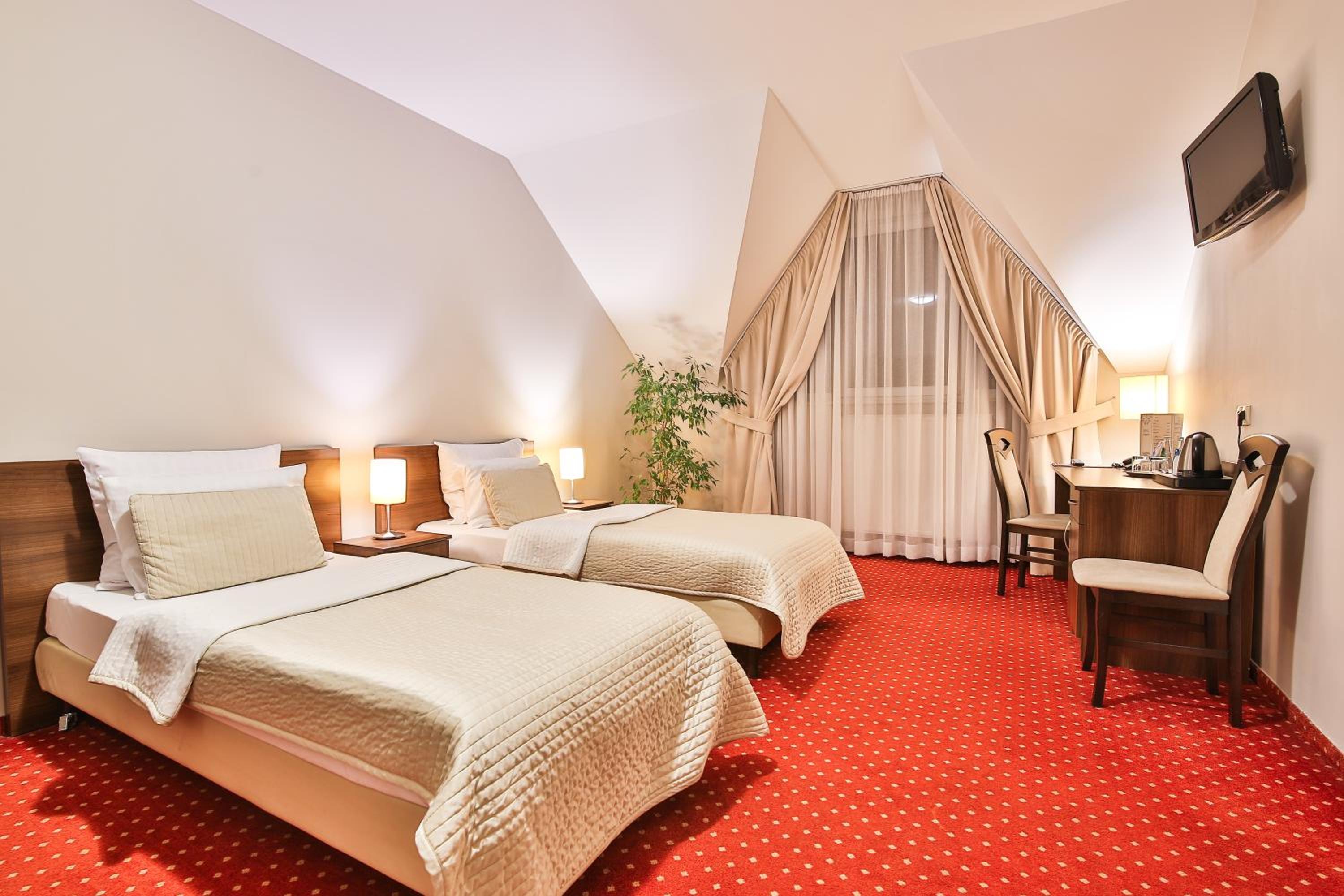 Hotel Kantoria, nestled within a recreational and sport complex in Tarnów, offers beautifully designed rooms with free Wi-Fi and LCD TVs. Each room boasts a vibrant interior with a work desk and a luxurious private bathroom.