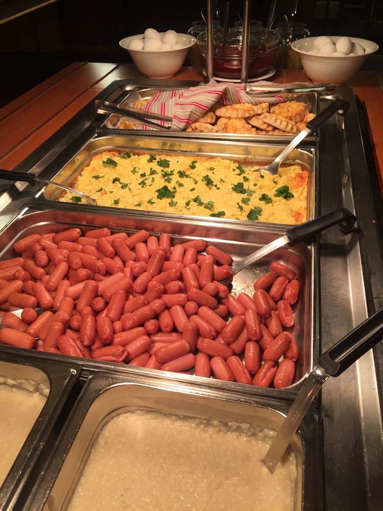 Aamiainen muistutti koulun ruokalaa. Ei ollut tätä päivää. Huoneen hinta oli kuitenkin 123 euroa. Huoneet kaipaavat päivitystä. Oli sentään patja.