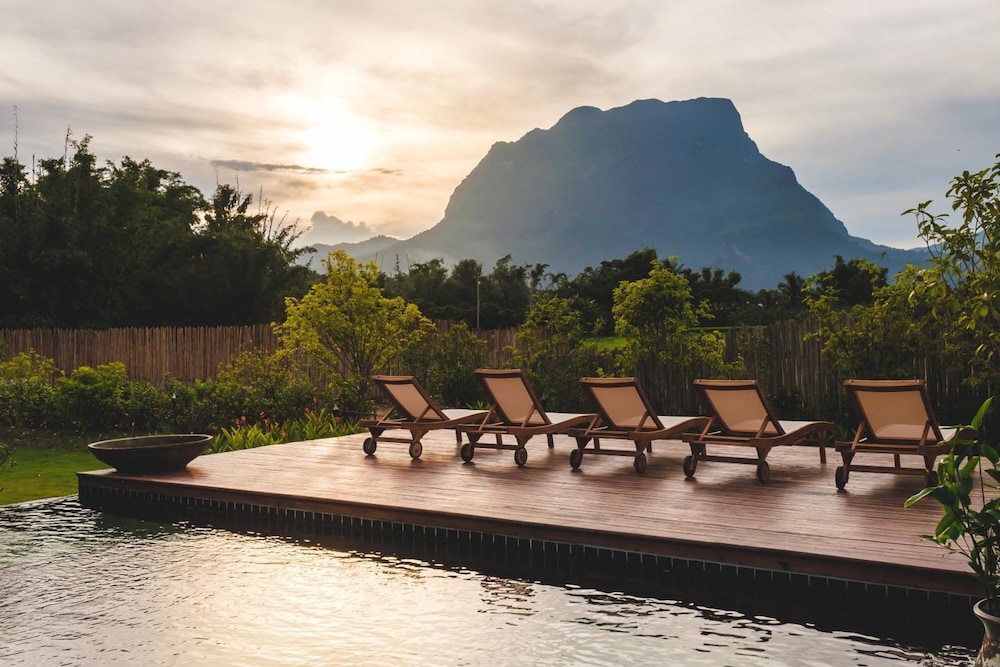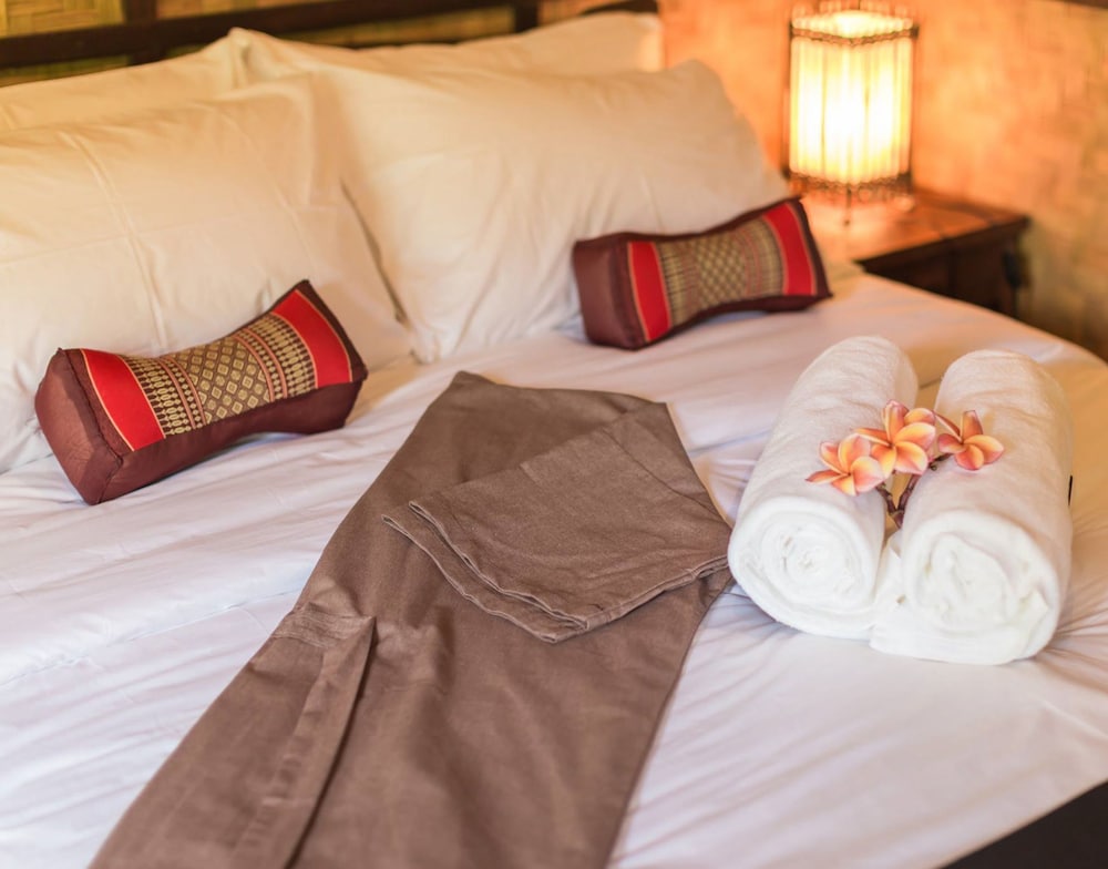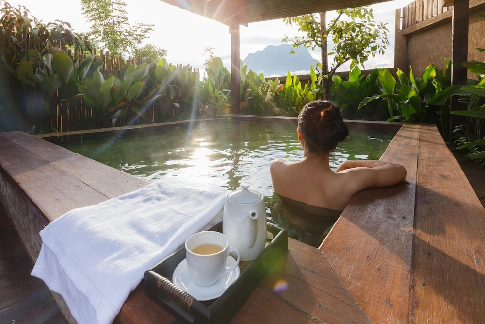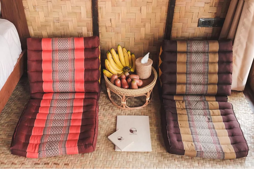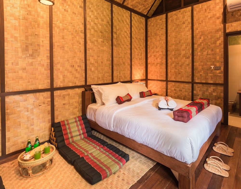 Whats not to like with a private on sen on the premises overlooking the mountains and organic vegetables growing in the garden. This place has an amazing view of the mountains and lovely staff. The restaurant serves up lovely thai traditional food local to the area and the location is good for the attractions.Very quiet and relaxing the accommodation is basic but very comfortable and has organic kaffir shampoo and turmeric body wash toiletries, air conditioning and a big bathtub, We stayed in the 2 bedroom villa and we looking forward to returning all it needed was yoga classes on the lawn. Absolutely divine!