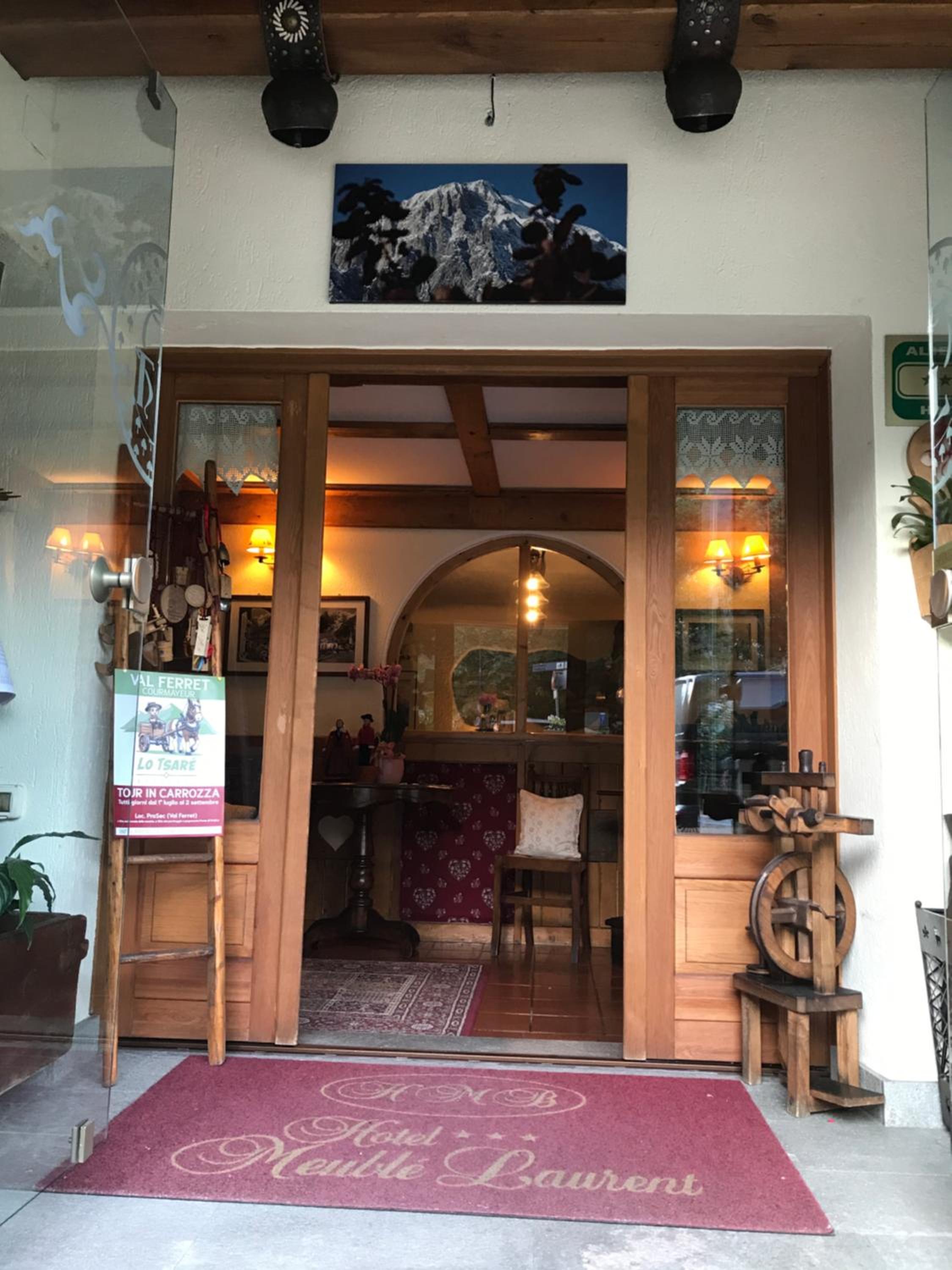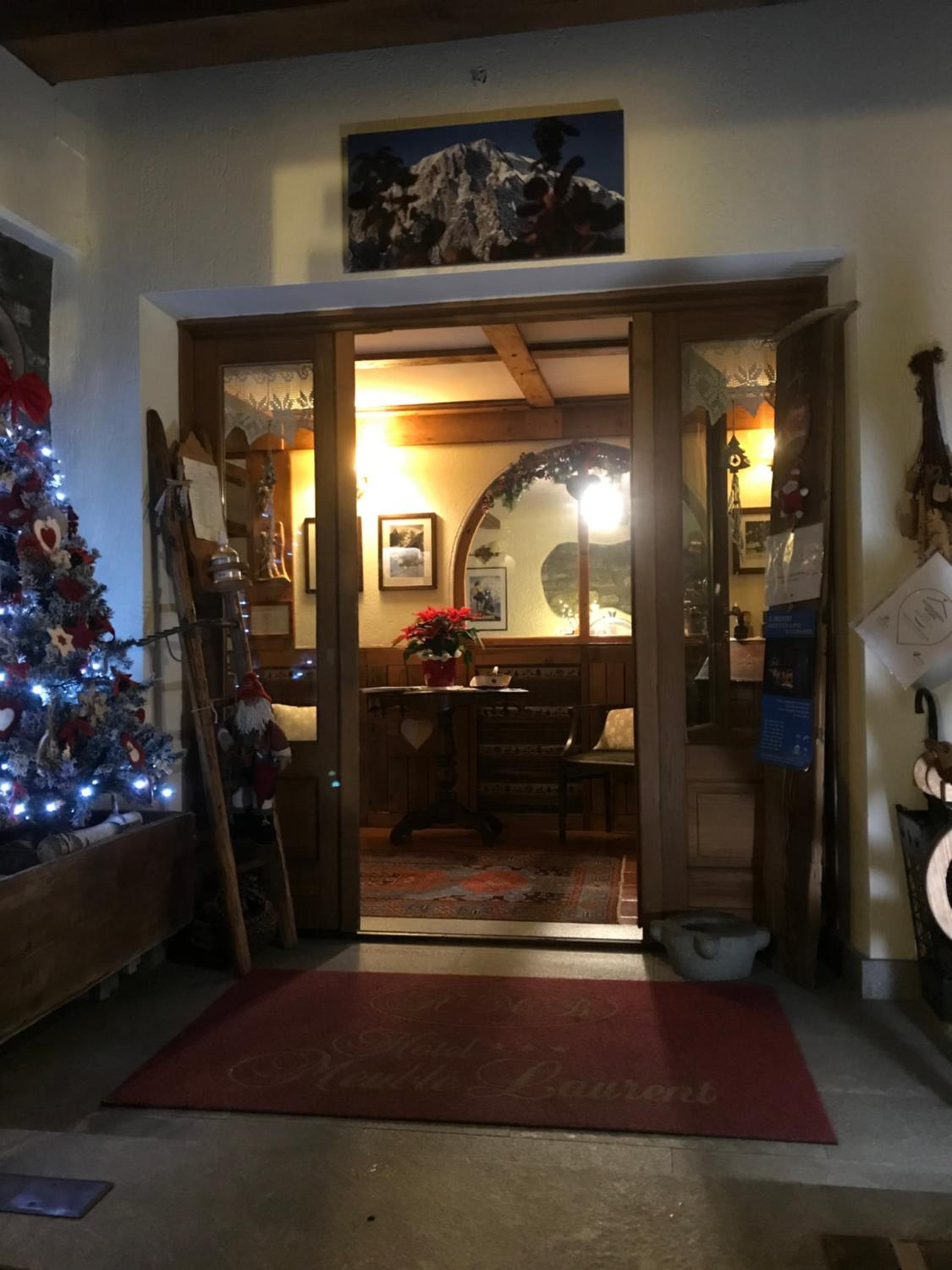 Enjoy picturesque mountain views from the comfort of your cozy Alpine-style room at Maison Laurent, complete with modern amenities.