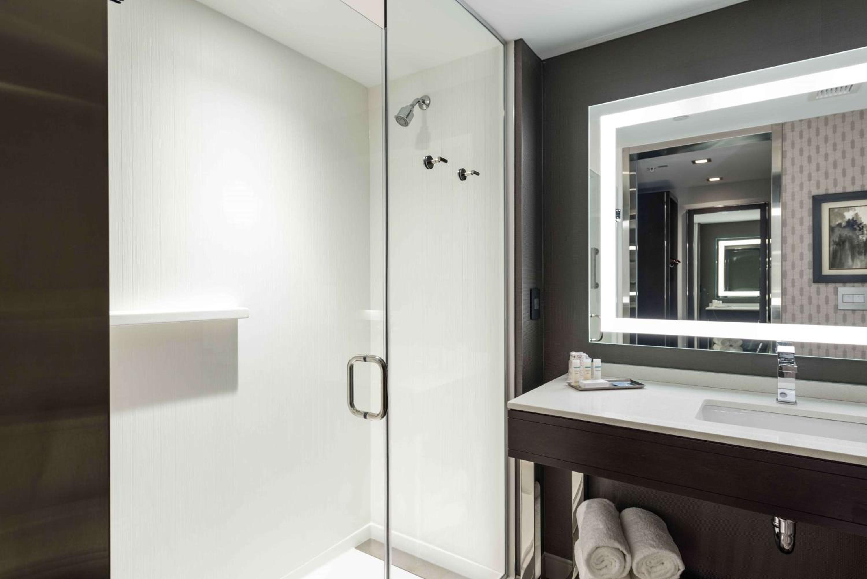 Room was great, shower had fantastic pressure, comfortable bed, and decent window view. Location was perfect for our stay. ADA accessibility was spot on. 11am check out time was perfect!