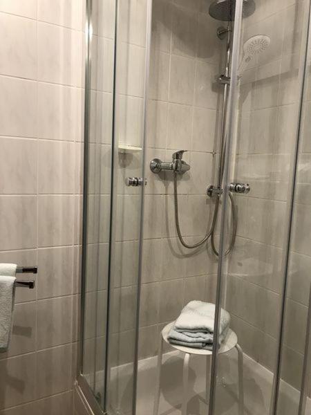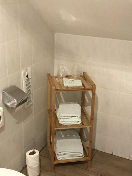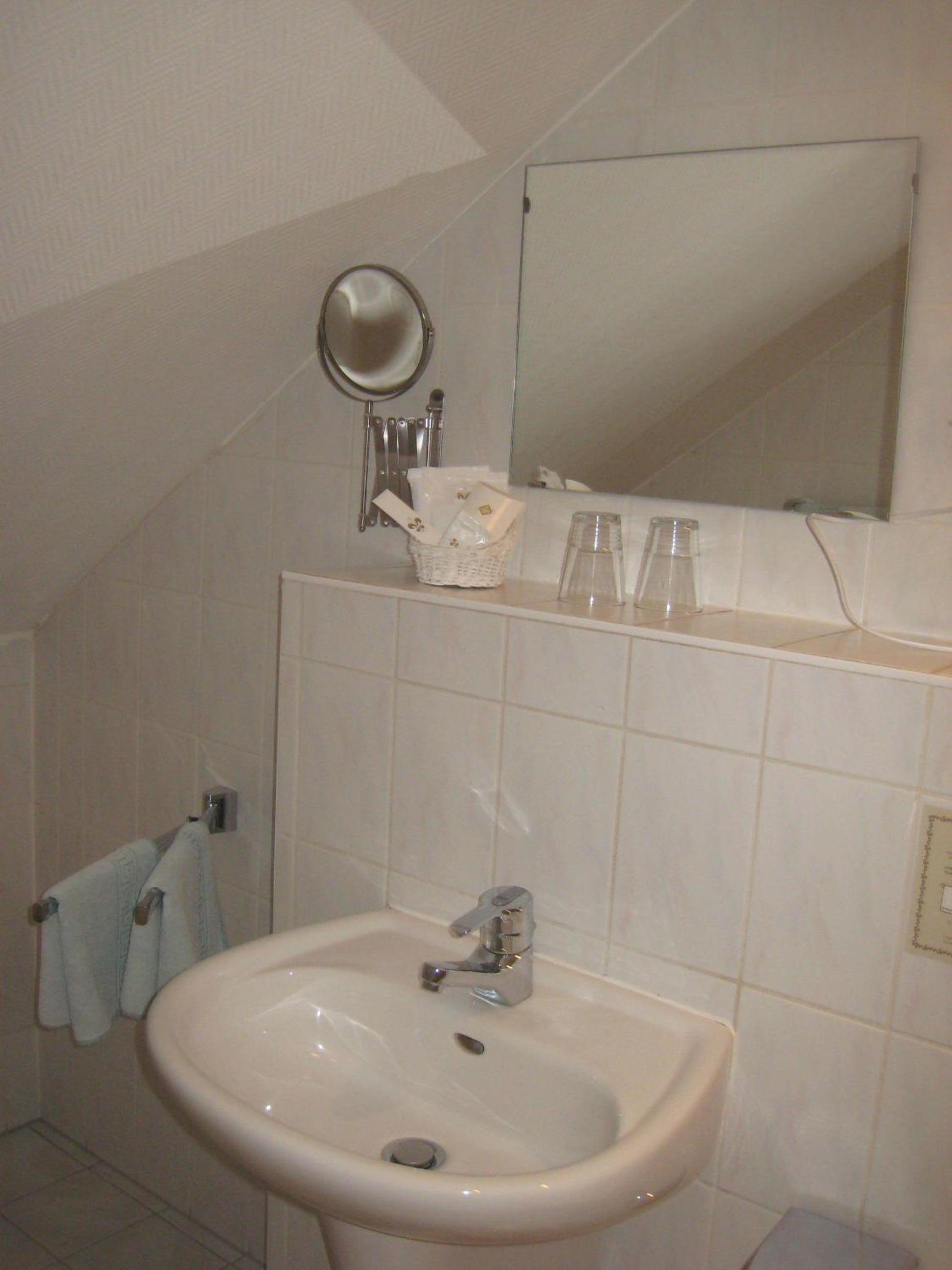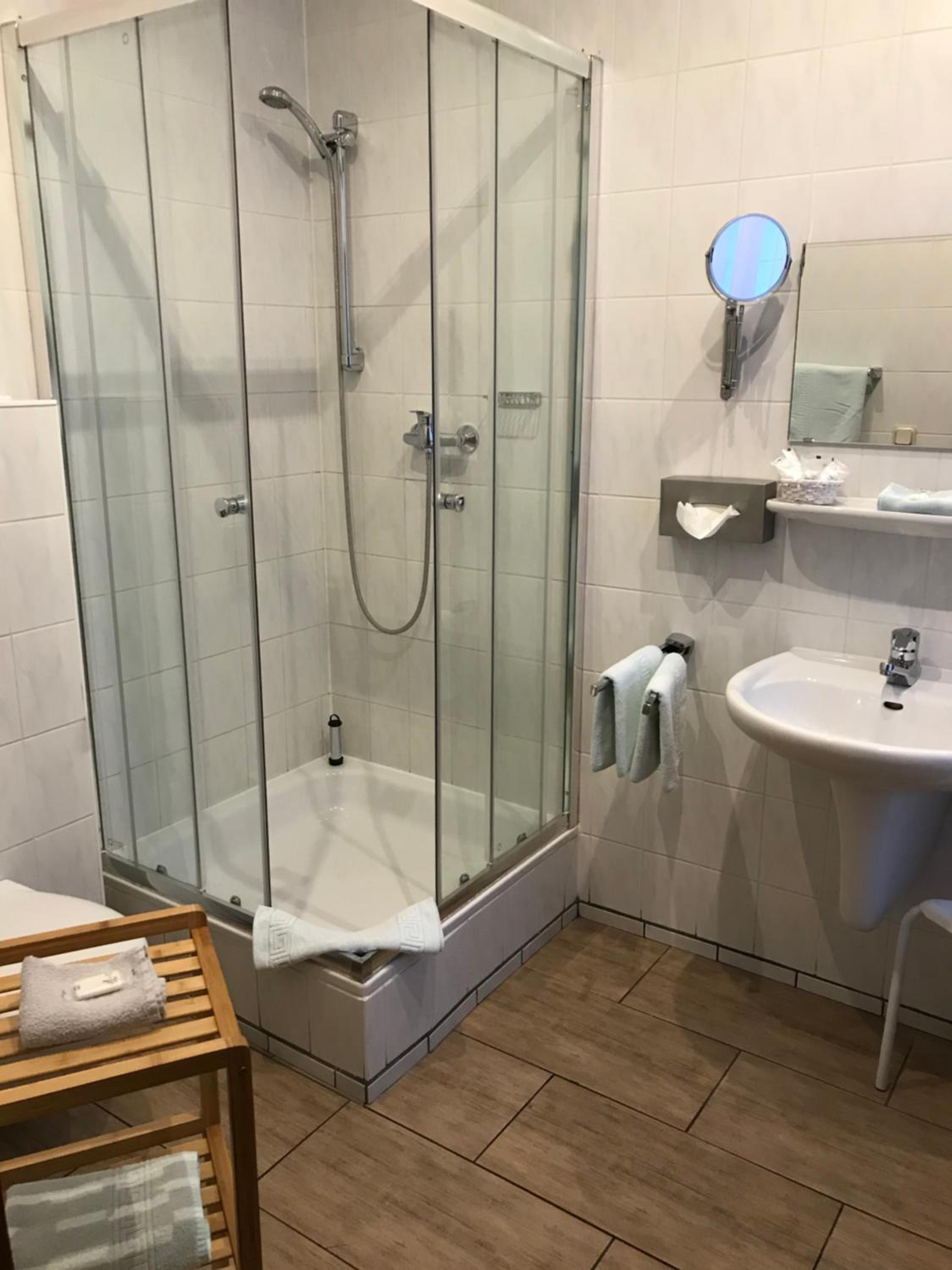 Zimmer direkt an der Straße gelegen, Schlafen bei gekippten Fenster nicht möglich , kaum Ablagen im Bad