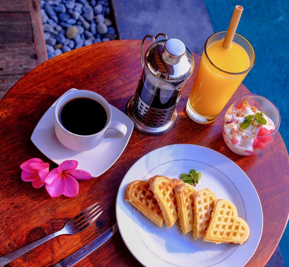 This place is amazing. Unfortunately we only stayed 2 nights. We could have easily spent 2 weeks. The guys thar run it are very friendly and nothing is too much trouble. The breakfasts were basic but very good. The pools are cleaned often. The villas are very well equipped and very clean. You're only a short walk from the beach and the shops/restaurants. The only slight downside for us was the call to prayer, from the mosque nearby, at 5 in the morning. But don't let that put you off. It didn't spoil it at all.