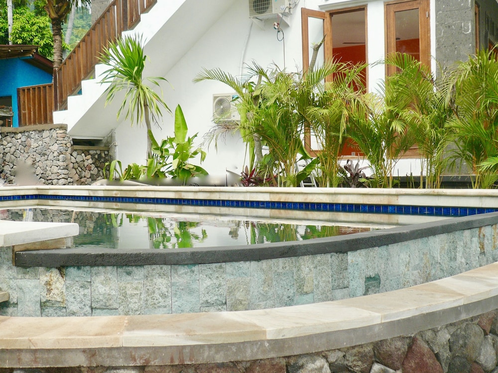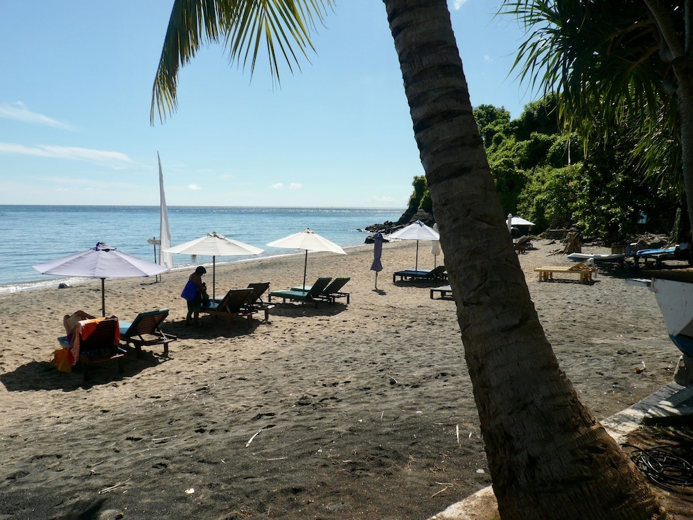 Eigentlich hatte ich nur fünf Nächte in diesem kleinen Hotel gebucht. Aber als ich ankam, wusste ich sofort, dass ich hier bleiben möchte. Ich habe dann um zwei Wochen verlängert und es nicht bereut. Das Hotel liegt wirklich direkt am Wasser und alle Zimmer haben Blick aufs Meer. Die Balkone sind nicht nur mit einem bequemen Sofa, sondern auch noch mit einem Ventilator und einem Tisch sowie zwei Stühlen ausgestattet. Das Bad ist sehr groß und es gibt immer heißes Wasser. Die Klimaanlage funktioniert einwandfrei und ist sehr leise. Zusätzlich gibt es im Zimmer noch einen Ventilator. Neben einem Safe gibt es noch einen abschließbaren Schrank. Die Zimmer werden jeden Tag gereinigt und Handtücher und Bettwäsche gewechselt. Das Personal ist überaus freundlich. Das Frühstück ist sehr reichlich und ganz hervorragend. Von kontinental über indonesisch bis Porridge ist alles dabei. Es gibt selbstgebackenes dunkles Brot und zu jedem Frühstück gibt es einen Obstteller und einen frisch zubereiteten Saft. Auch das Essen im Hotel Restaurant ist sehr sehr gut. Direkt an dem Hotel gibt es eine Dependance der Tauchschule Amed White Sand Divers. Vor dem Hotel befindet sich der Corral Garden. Er eignet sich prima zum Schnorcheln. Schnorchel Equipment sowie Sonnenliegen kann man am Strand ausleihen. Hier gibt es auch hervorragende Massagen.Die Atmosphäre hier ist familiär und locker, ich habe mich noch nie in einem Hotel so wohl gefühlt wie hier. Danke an alle, die dies ermöglicht haben.