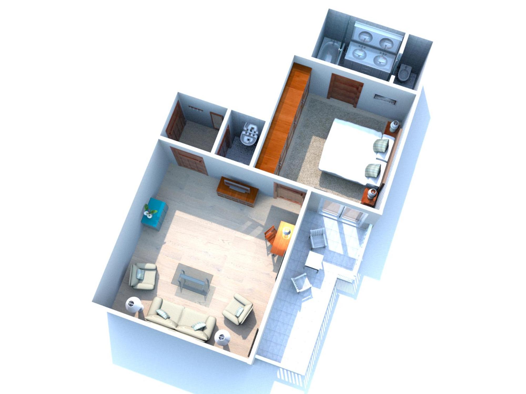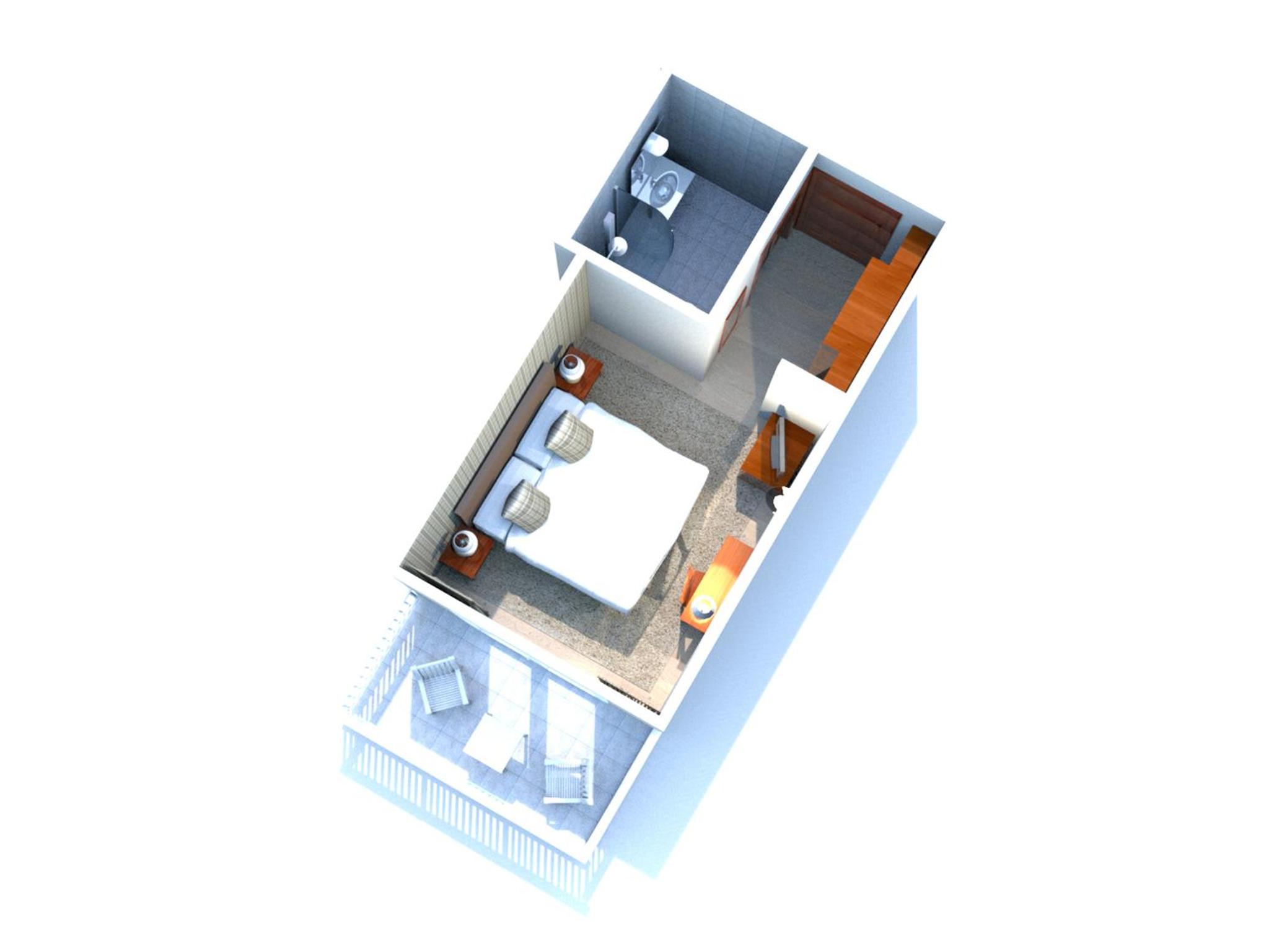 Camera e bagno di dimensioni ridotte.