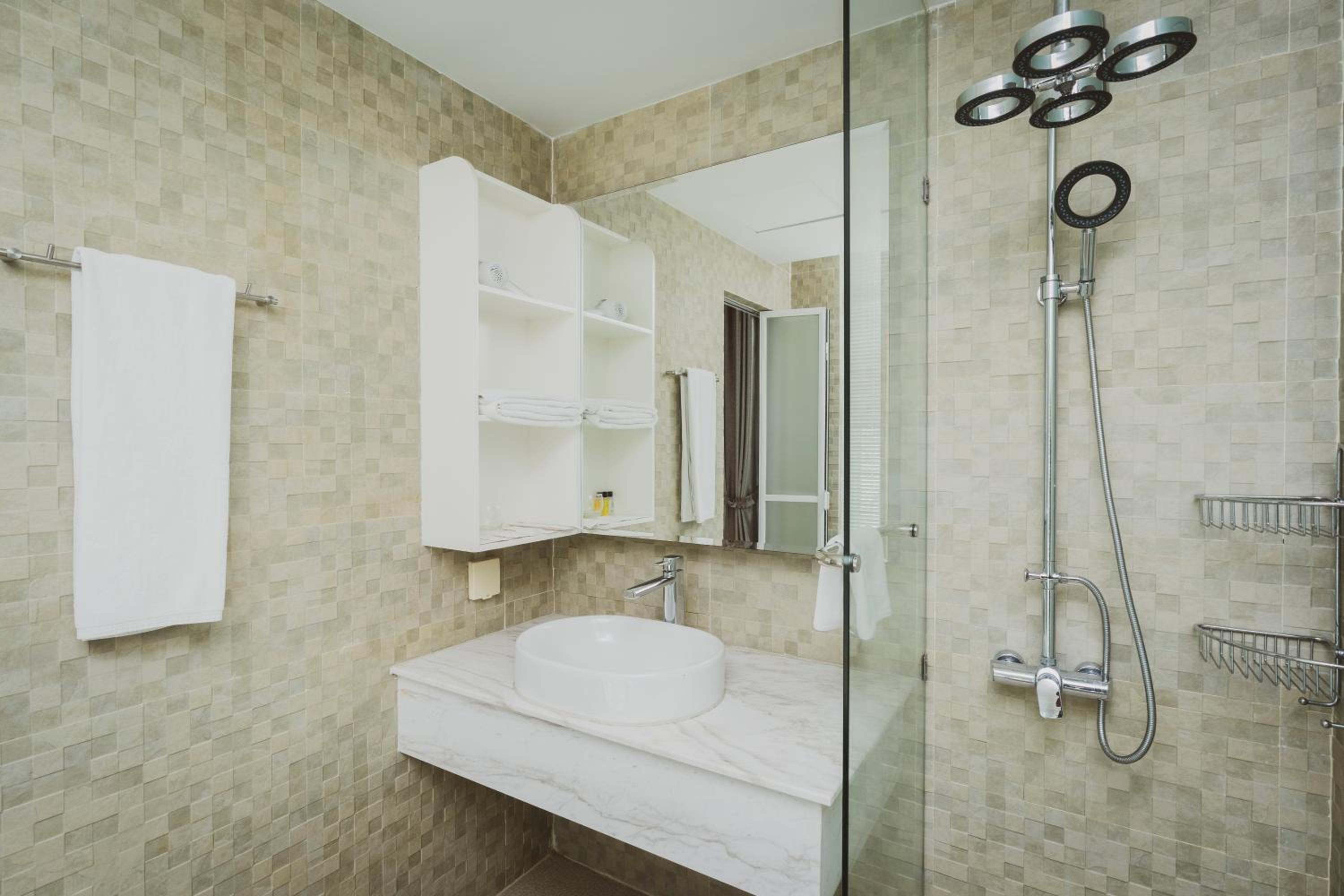 Naki Suites @ Silvertown in Phnom Penh offers a luxurious stay with air conditioning and a well-equipped kitchenette in each unit. Enjoy the comfort of a private bathroom and relax in the seating area provided.