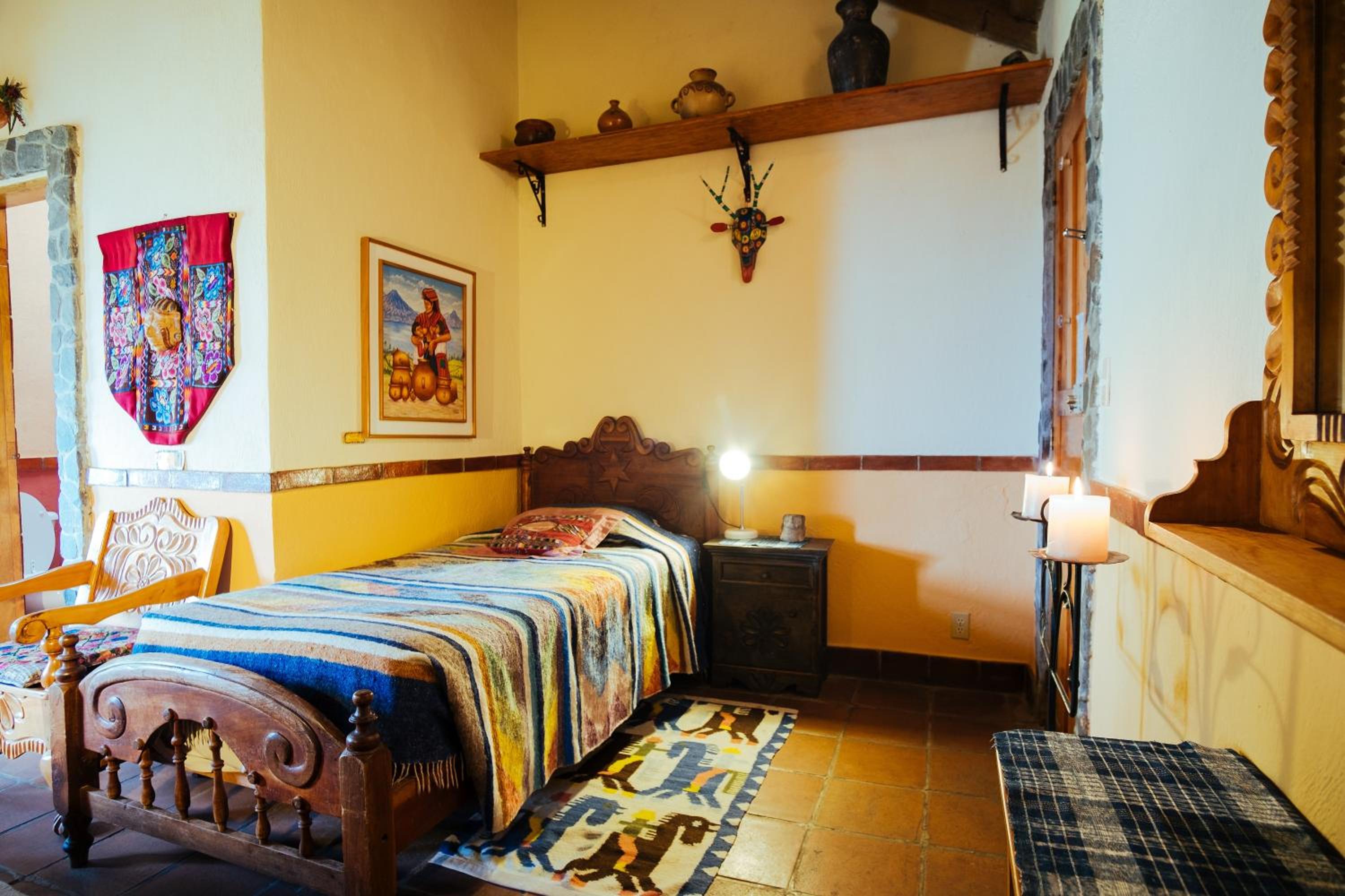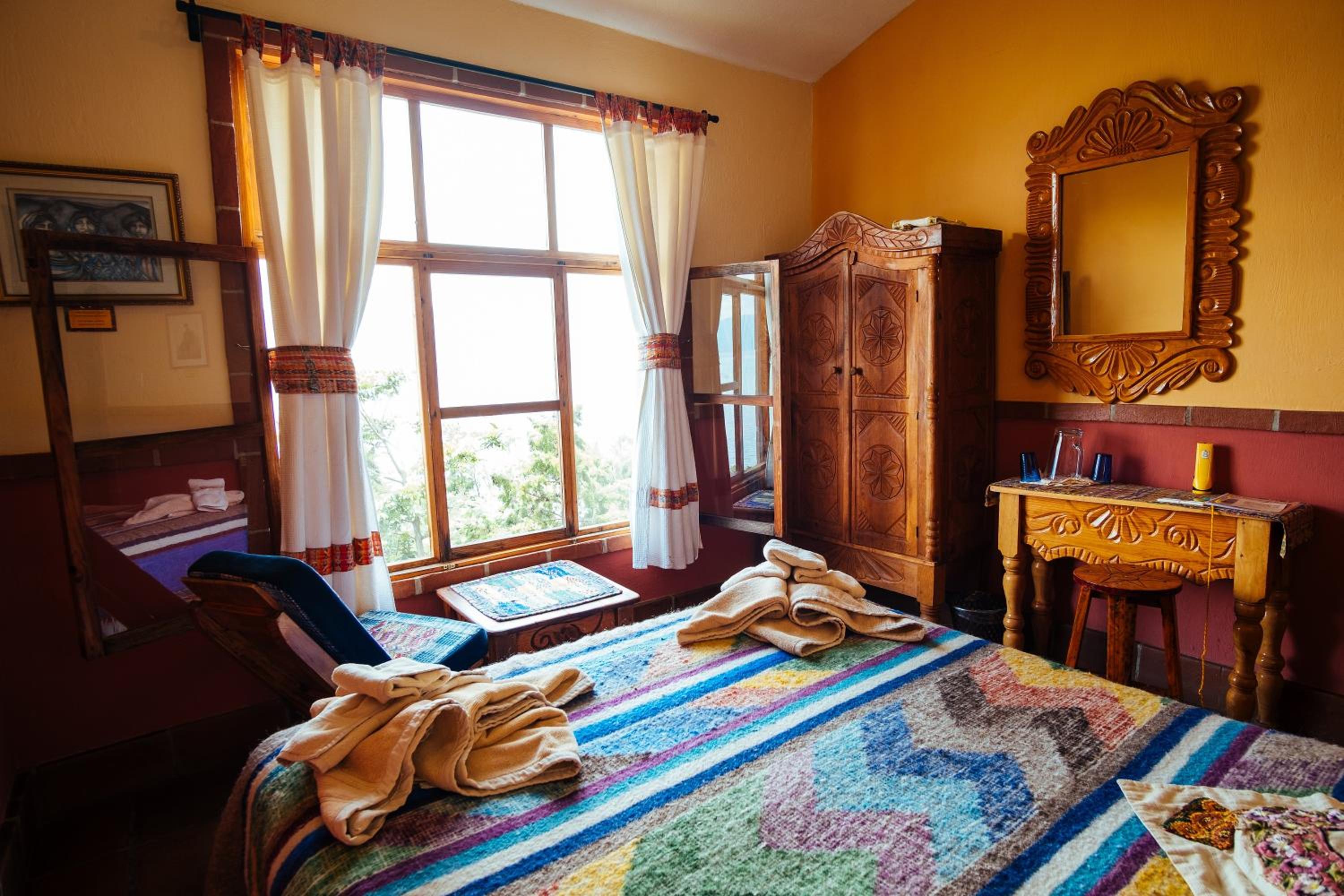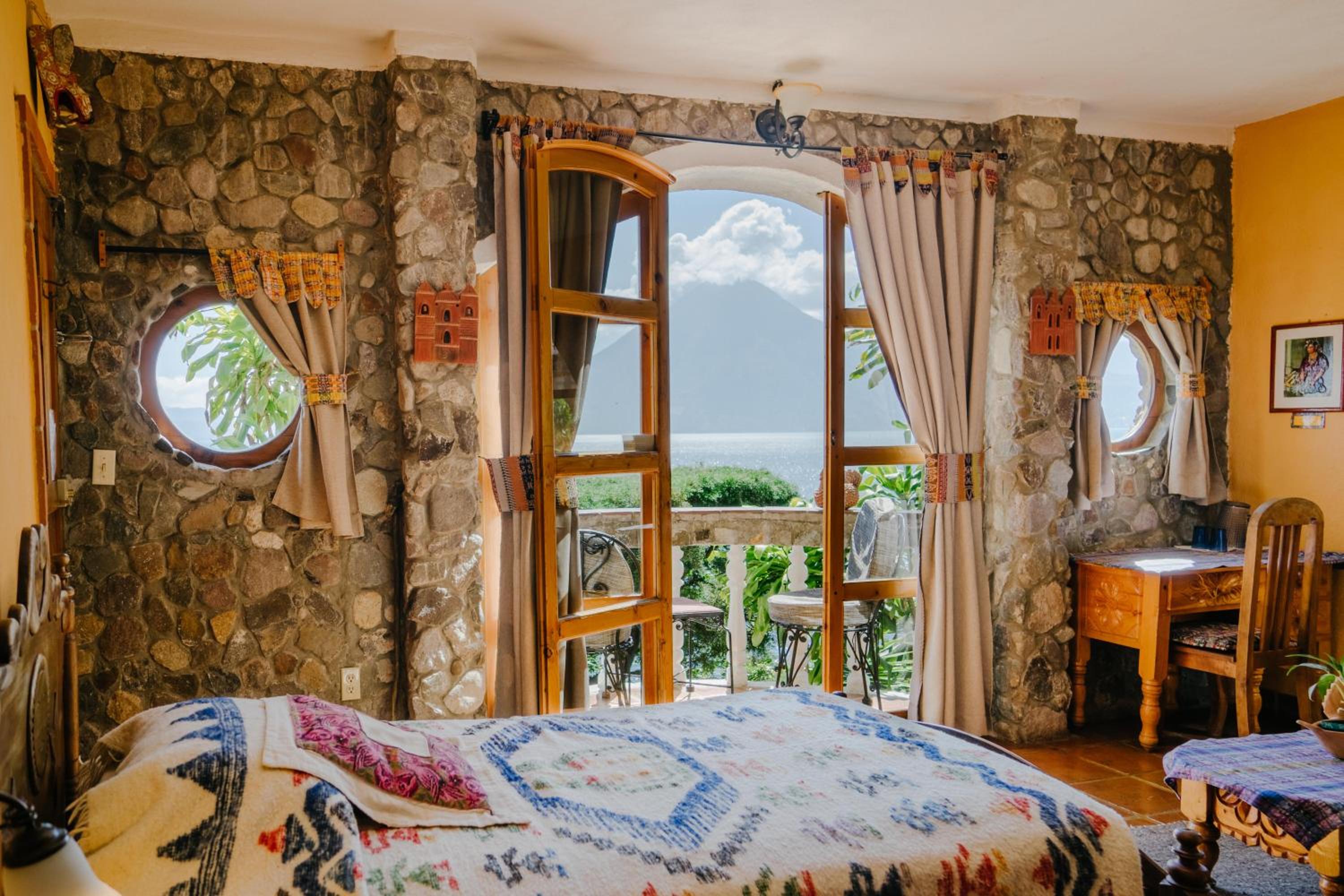 Hotel La Casa del Mundo offers breathtaking views of Atitlán Lake from some of its uniquely decorated rooms. Guests can enjoy hand-crafted Mayan décor and solar-heated water in the private or shared bathrooms, along with free toiletries.