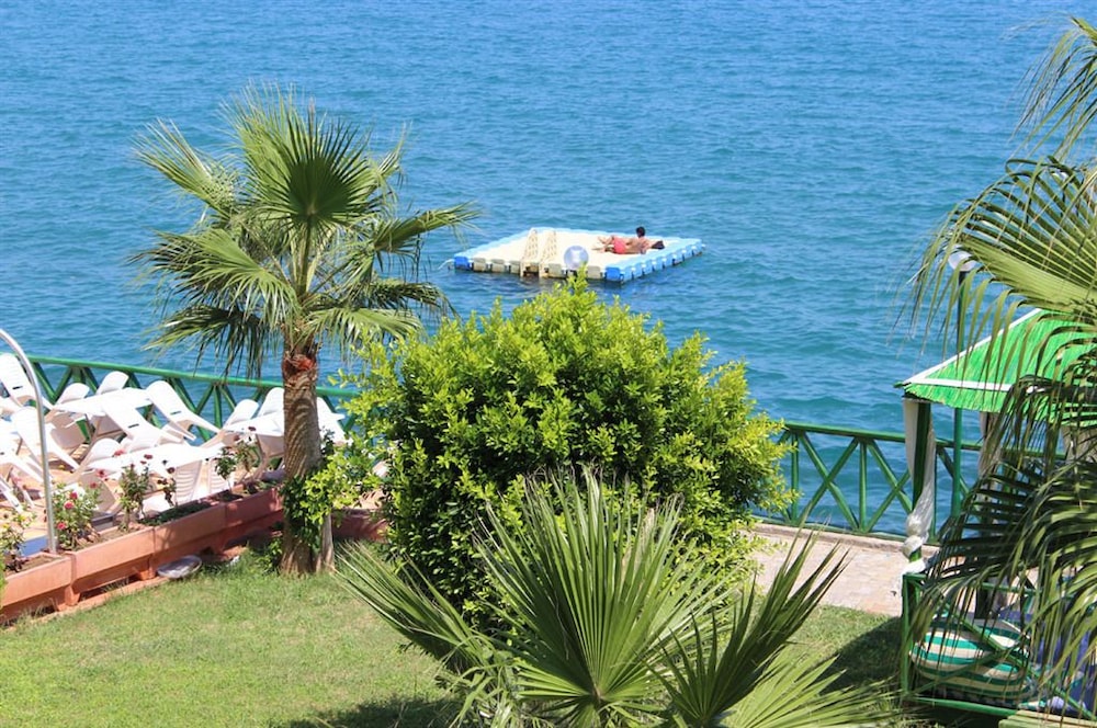Otel konum olarak iyi yalnız kendine ait bir sahili yok herkes oradan giriyor kırık dökük bir iskeleden denize giriyorsunuz kahvaltısı ve yemek sıradan havlu vermiyorlar ama manzara müthiş otel çalışanları güleryüzlü