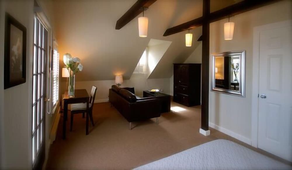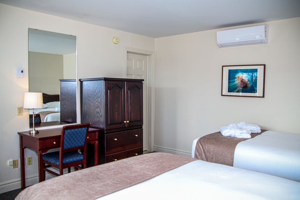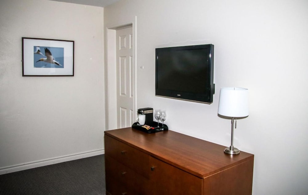 The room was very old and outdated. The bathroom was tiny with no place to put anything. The windows opened but didn’t lock so we felt the need to put our computers in our car trunk rather than leave them in the room when we left for the day. The hotel was conveniently located so you could walk to town in about 10 minutes and not pay to park there which is expensive. The view from the window was amazing as you could see percé rock and the bay. The hotel has a nice lawn right on the beach with several Adirondack chairs. This was the main redeeming feature of the place. There is also a really good restaurant beside it which I think is affiliated with the hotel.