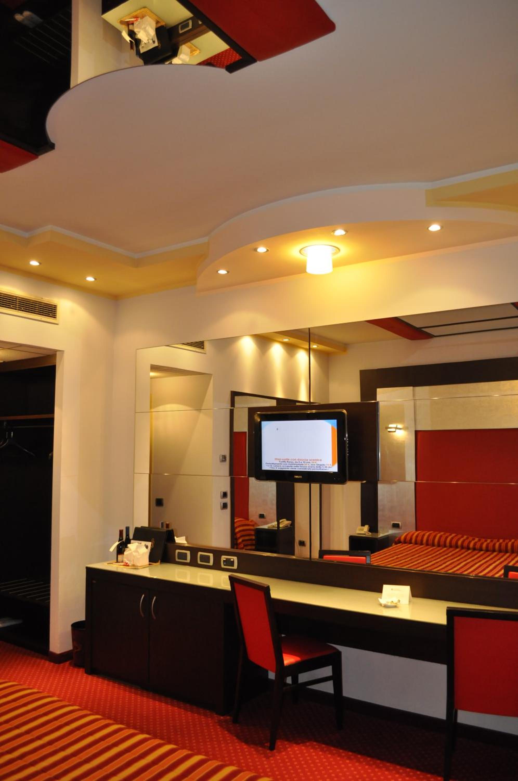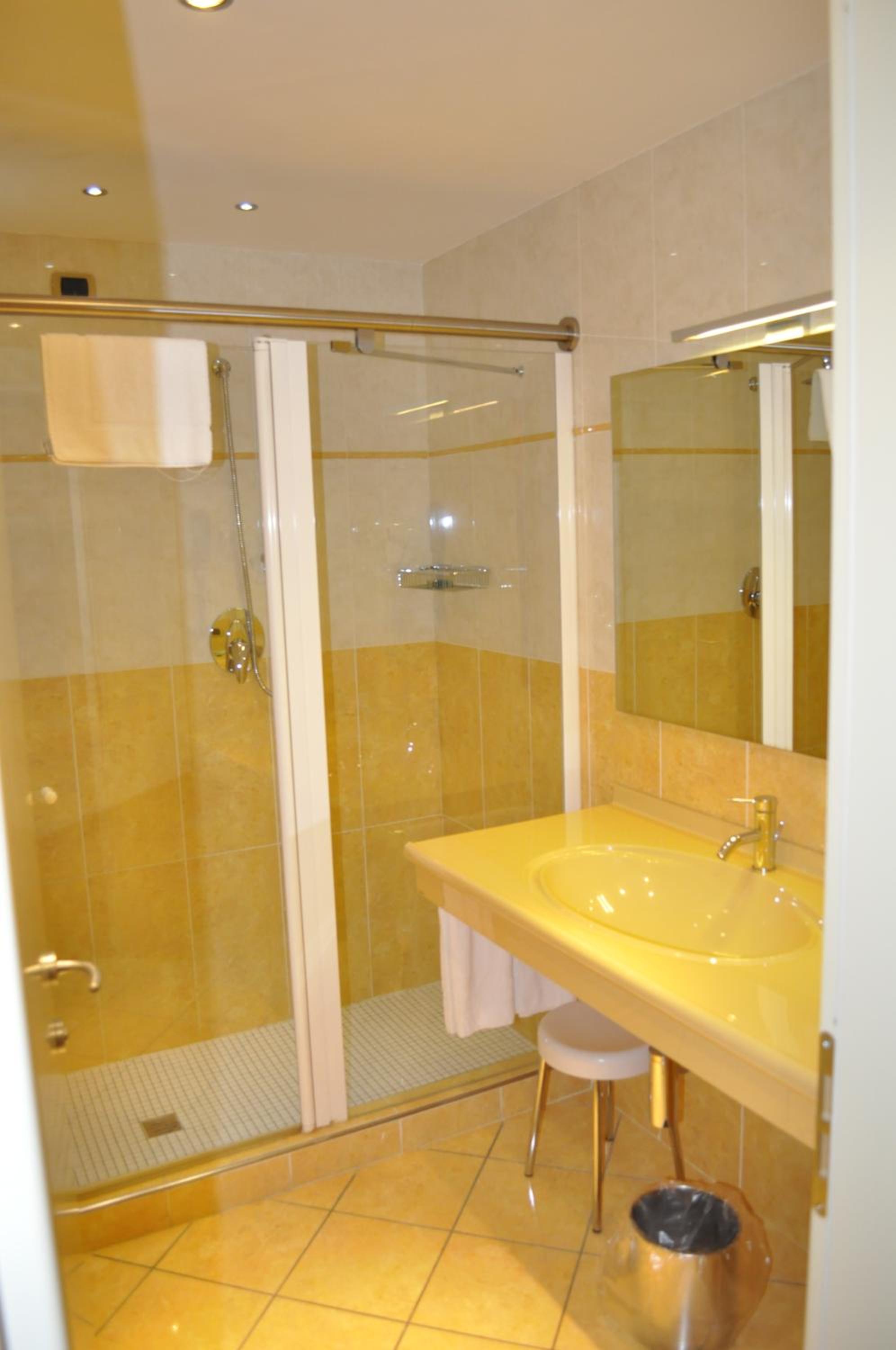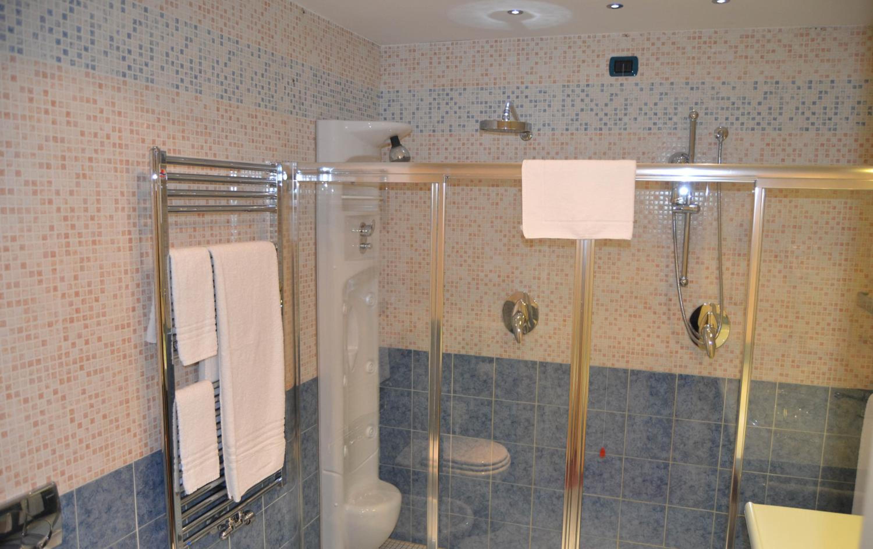 Tanti specchi per serate in compagnia diciamo, grande riservatezza. Comodo per viaggiatori e coppie