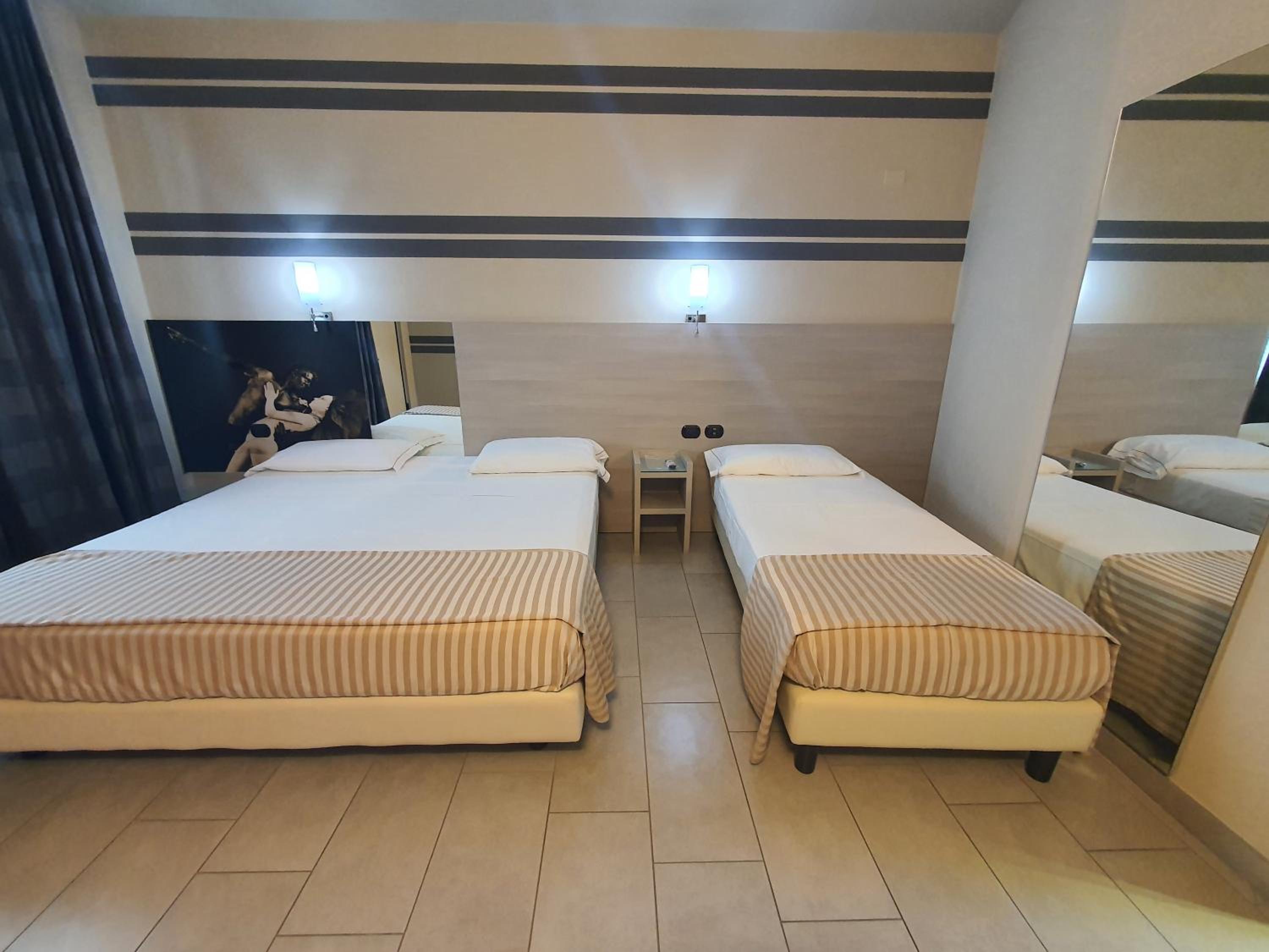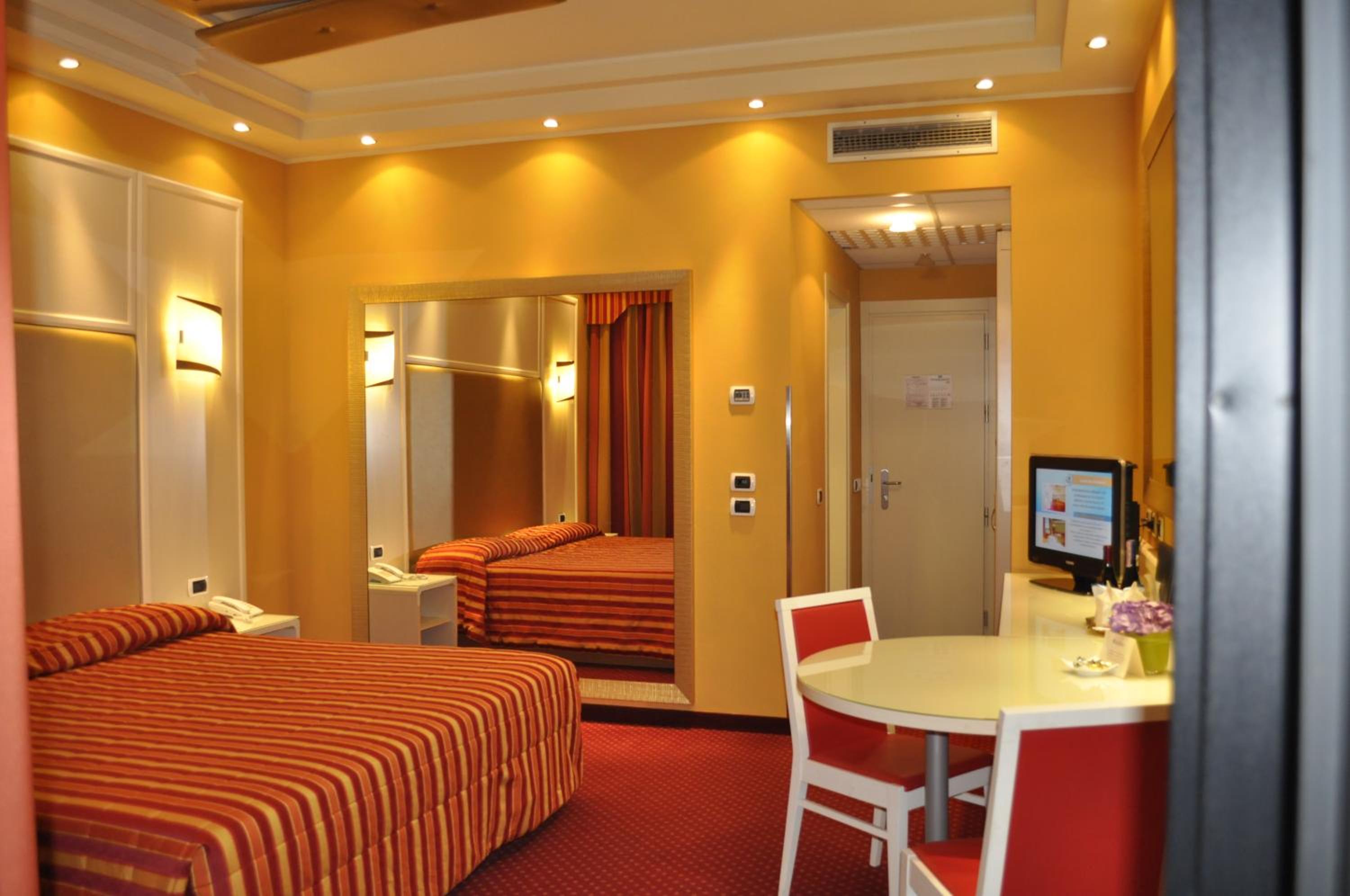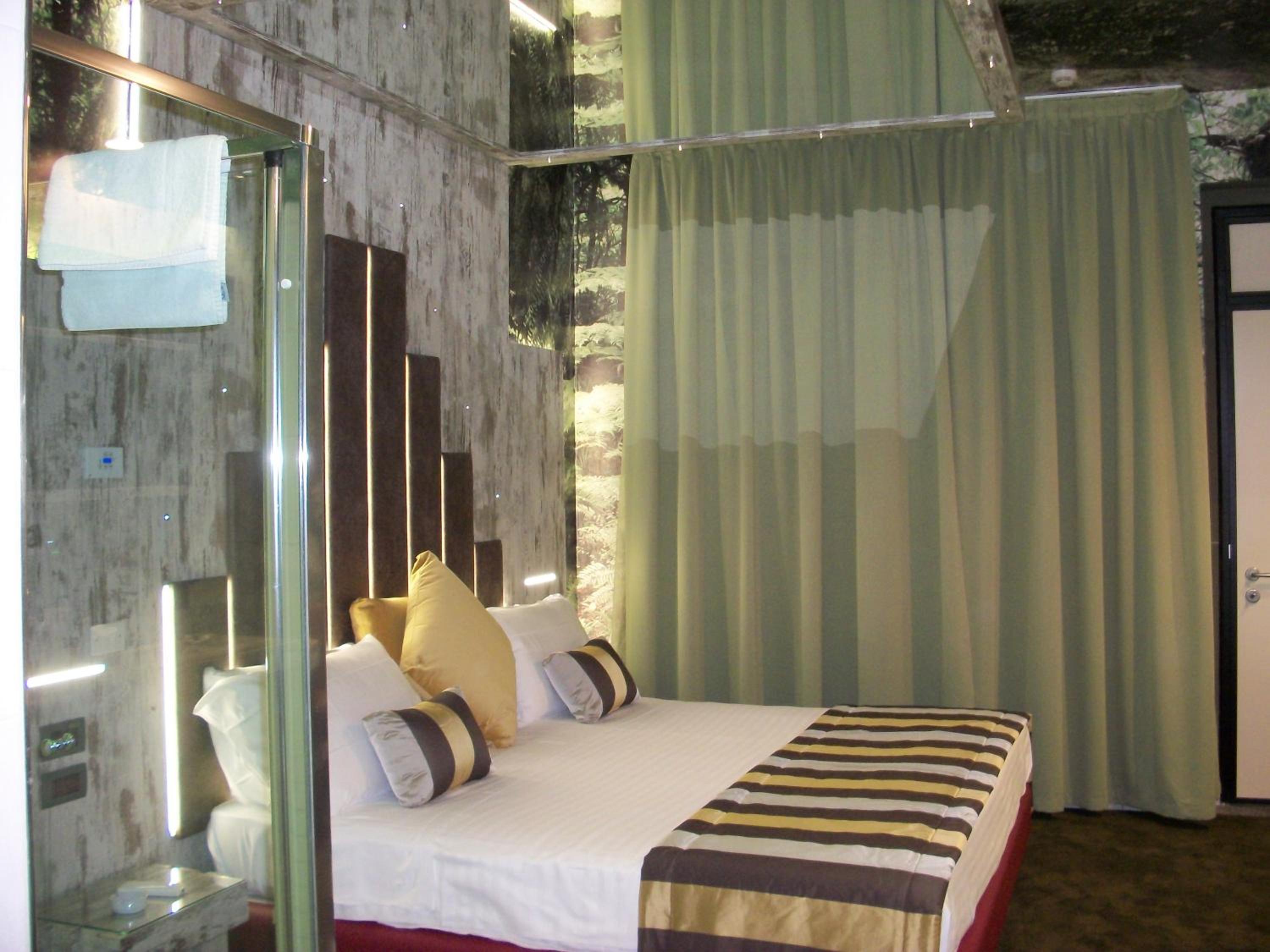 Tanti specchi per serate in compagnia diciamo, grande riservatezza. Comodo per viaggiatori e coppie