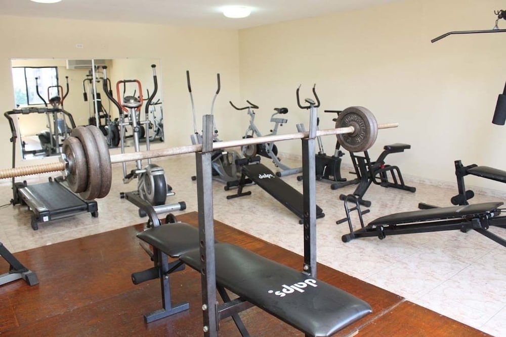 Has an aging gym (my preference anyways) and a decent selection of free-weights, barbell, and some machines. Coin laundry on-site is a huge bonus for extended stays.