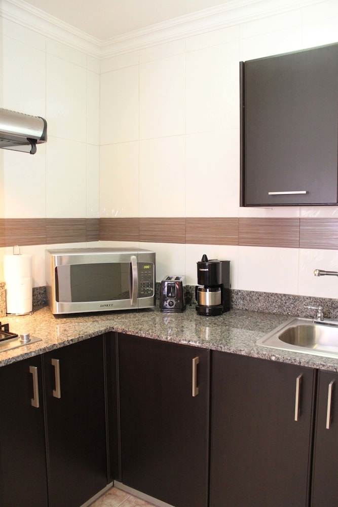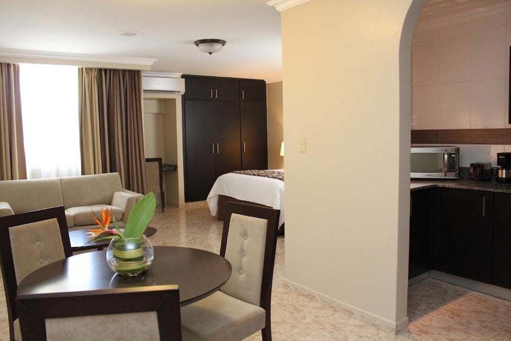 I enjoy staying at Sevilla Suites. There is a great kitchen but I never use it myself. The room(s) are spacious and nice. It is convenient to just about anything you need.