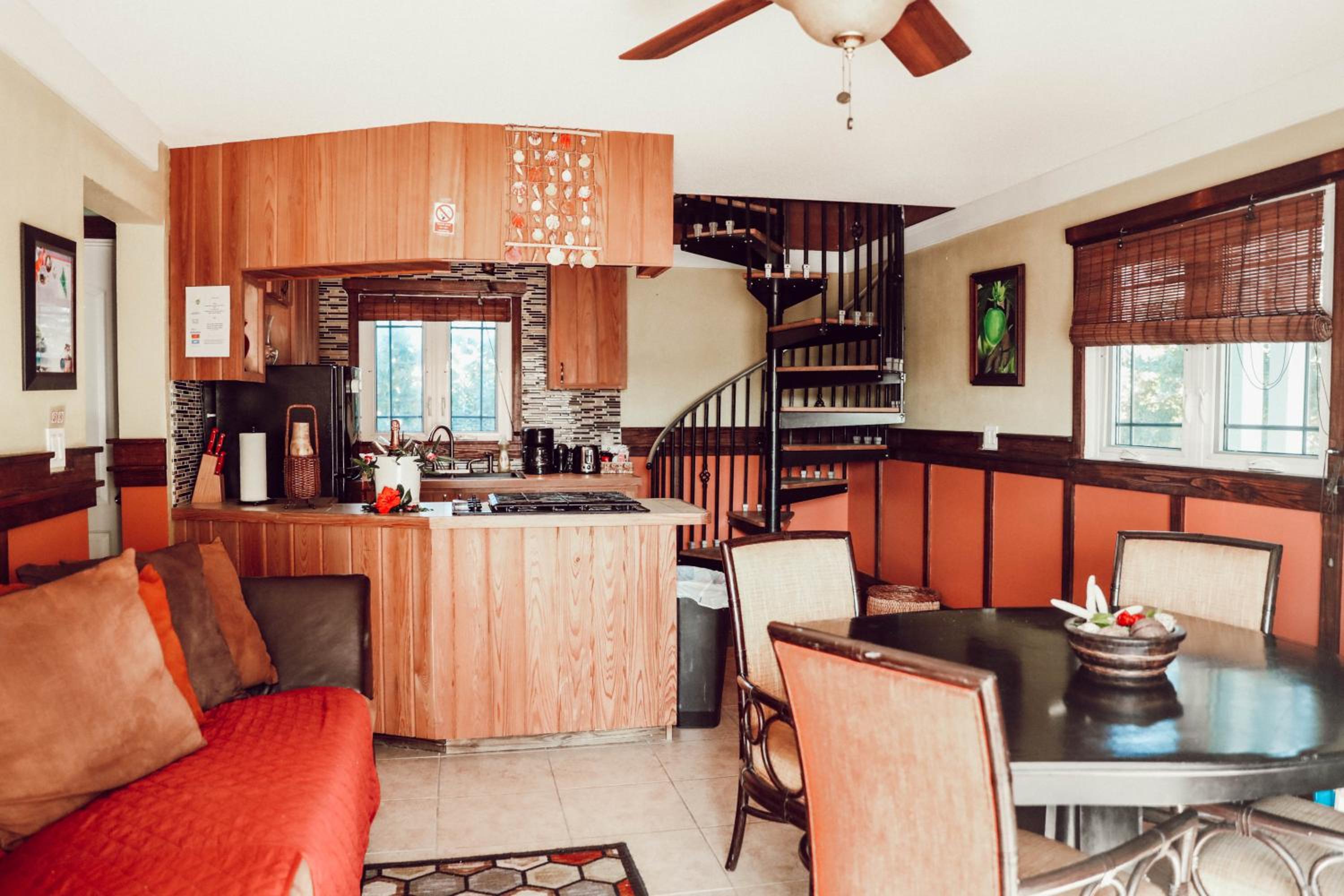 From the moment I arrived until the last day, I felt at home! Gabby picked me up at the airport, the most adorable person! Miss you already! She gave me a tour of the island in the little buggy, showed me where everything is and she was so nice and helpful! Dymond, the chef from the cafe is also the amazing and super nice and prepares the best breakfast wrap :)