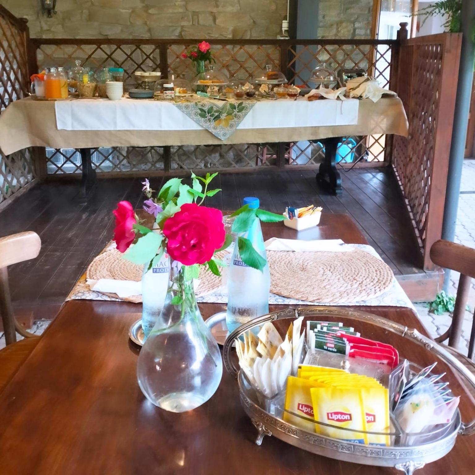 La colazione è un’esperienza unica, all’esterno sotto una pergola, con ogni ben di Dio, coccolati dalle cortesie dei signori che gestiscono la locanda.