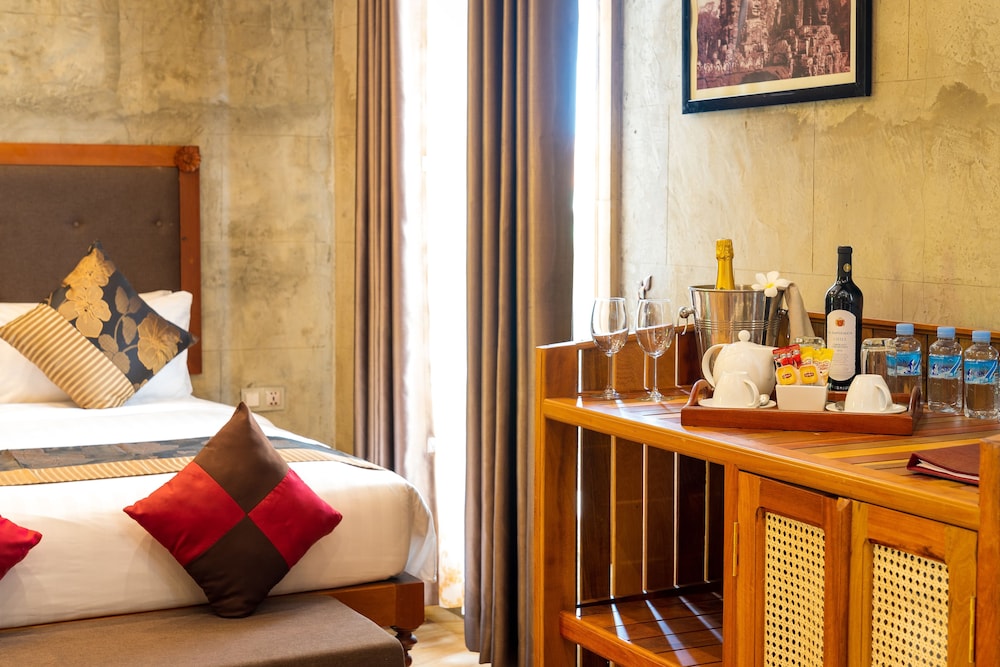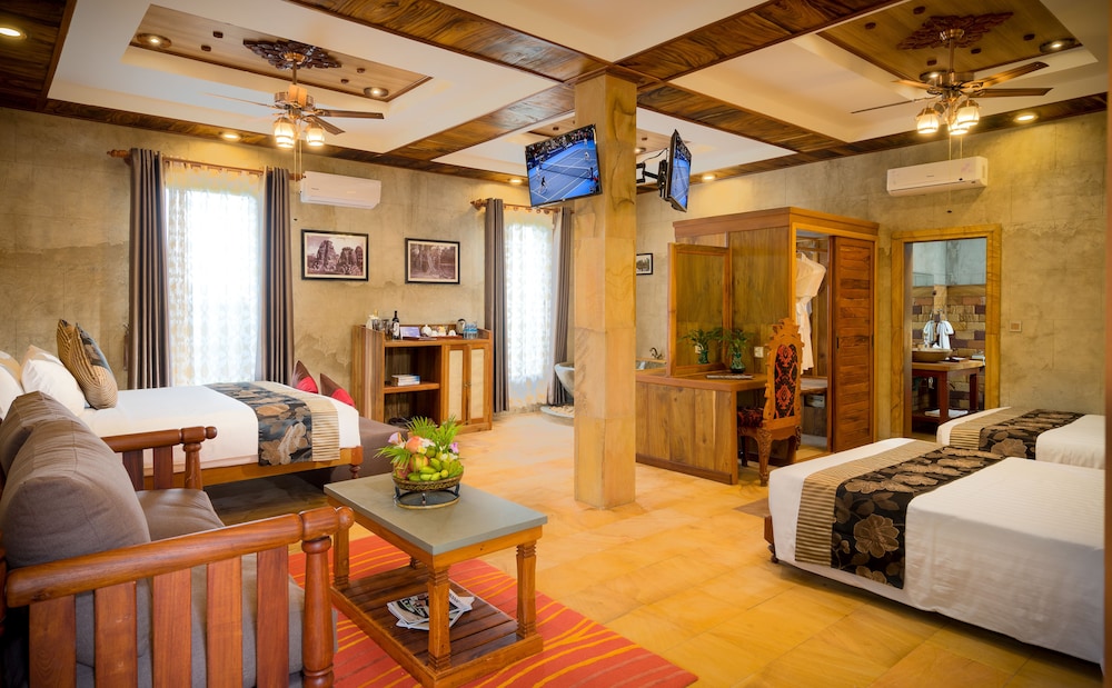 We arrived to our splendid and most elegant hotel stay and was so kindly greeted by its owner to include a most appreciated tour of the teak covered grand entrance lobby as well as the impeccable landscaped grounds bordering a luxurious oversized outdoor pool. Absolutely breath-taking! Our room was completely covered in teak wood & was as elegant as the remainder of the spa hotel. We met Cambodia's #1 tuk tuk driver almost immediately (Mr. Py) & will forever provide the highest level of recommendation for this hotel, their amazing class 'A' staff and our finest Cambodian friend & driver, Mr. Py. The compliments are endless & we are forever grateful.