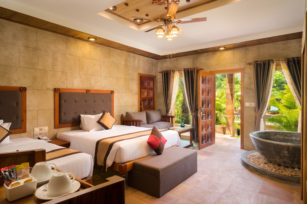 The hotel has a family feel to it, it's smallish compared to many in town which only adds to its appeal. The rooms are comfortable, well appointed and clean. The restaurant is excellent, well priced and fresh. Pool was a perfect spot to chill. Above all the service was top notch, above and beyond. From the moment Vannek welcomed us we knew we were in good hands, she was so charming and attentative! The rest of the team showed the same level of professional yet oh so friendly care. Thavann made sure we had everything we needed at each meal, all we had to do is glance his way and he was at our side taking care of everything. This resort has successfully put together a great hospitality team and in my opinion success with this can make all the difference in a stay.
