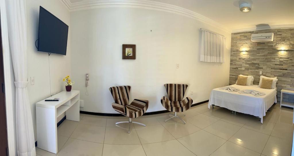 Quarto muito simples. Travesseiros ruins, mas o é Chuveiro bom.