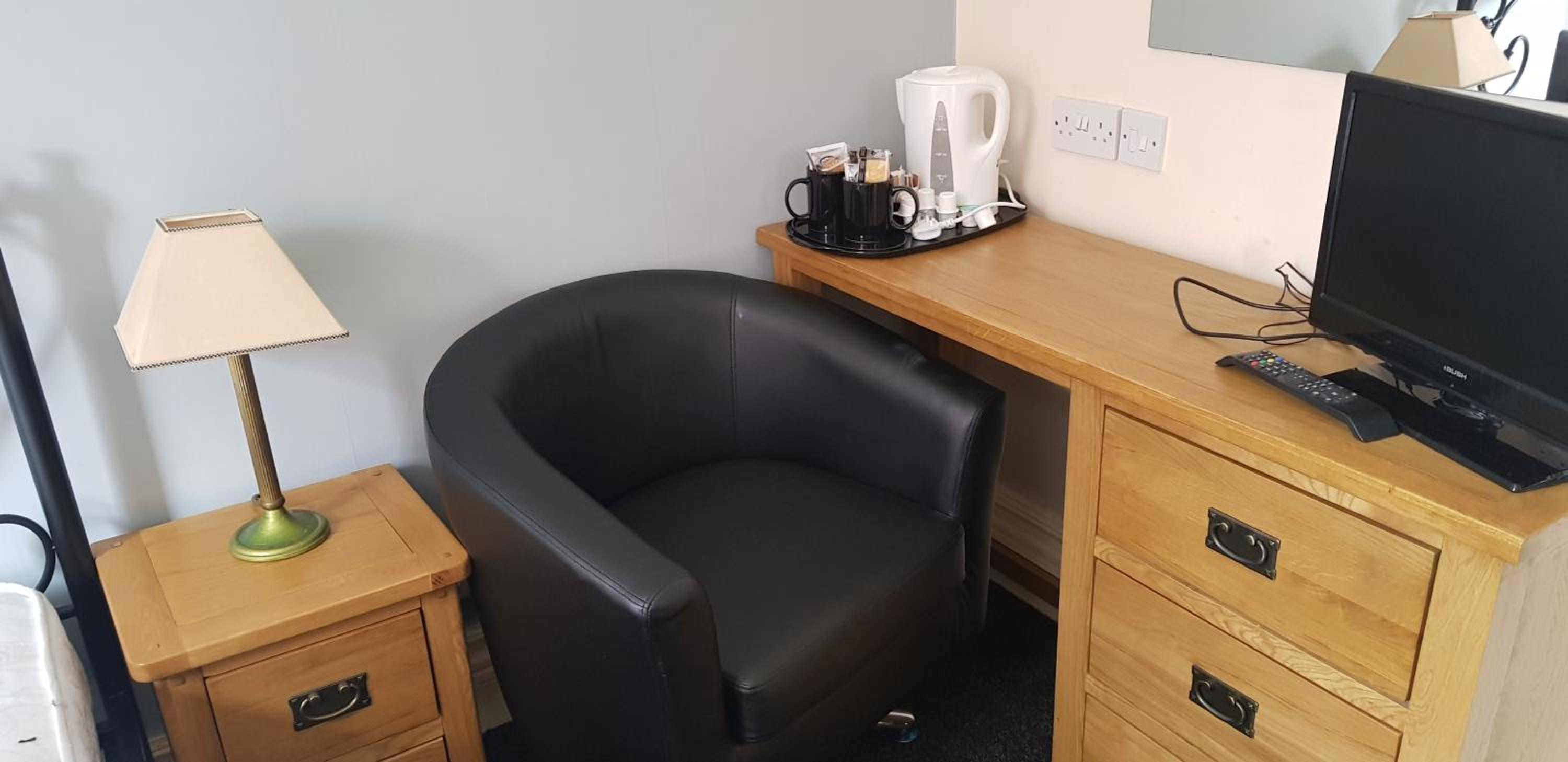 The shower didn't drain very well and I cut short my shower before it overflowed onto the floor; the shower door didn't close properly because the top rail isn't correctly fitted. There seems to be no facilities at all in the hotel other than a coffee vending machine at reception. The TV turned itself on at 5am and woke me up. There was no-one on reception at check-out to report any problems to. Again, you get what you pay for.
