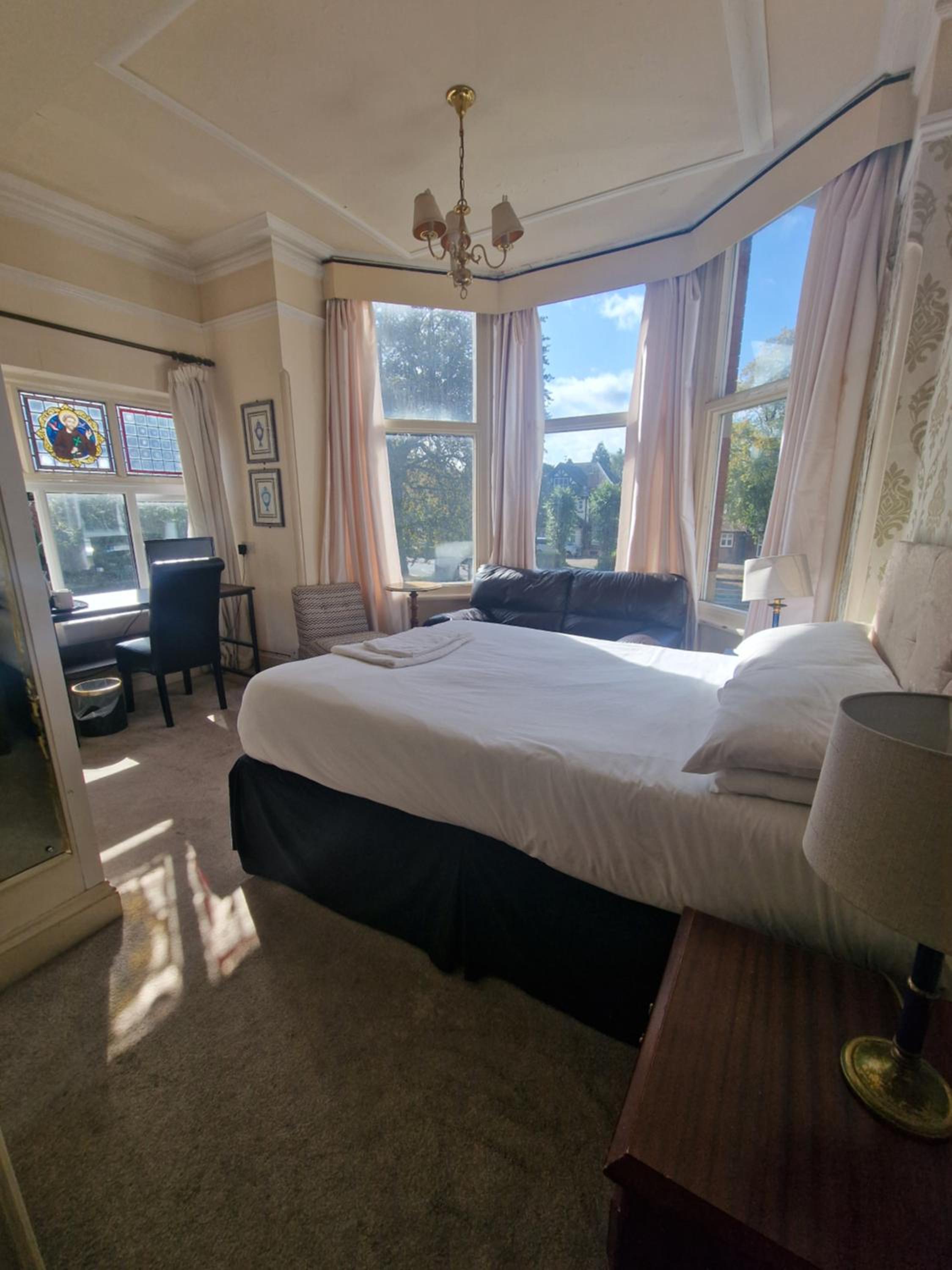 Indulge in our well-appointed rooms featuring en suite bathrooms, flat-screen TVs, and tea/coffee making facilities. Some rooms boast exquisite stained glass windows, canopy beds, and four-poster beds for a touch of luxury.