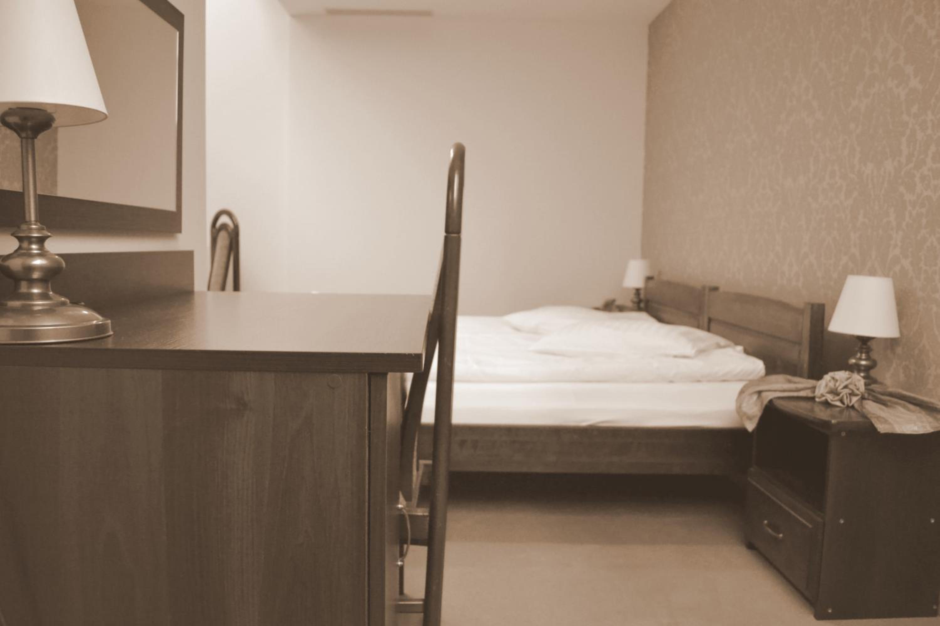 Brak czajnika i lodówki w pokoju.