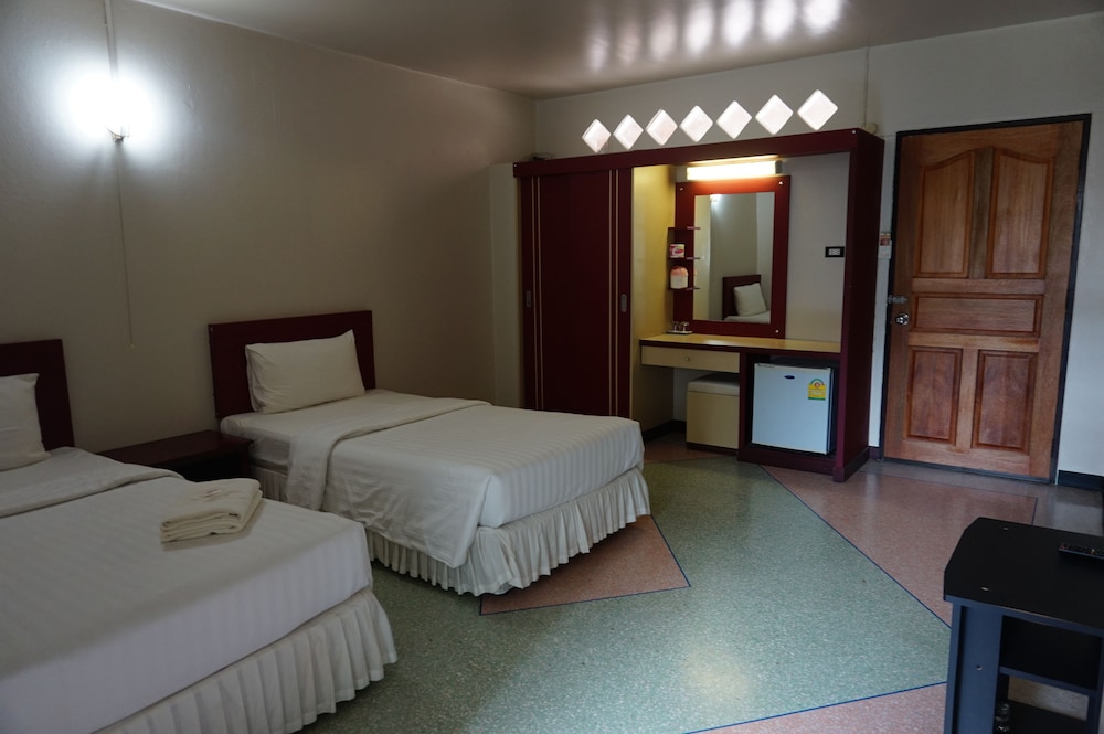 A basic low cost hotel. Clean Rooms, good shower in room, Rice soup for breakfast was tasty. Location reasonably central but nothing of note in vicinity, tucked away in residential area. Staff very helpful and always smiling in welcoming Thai style.