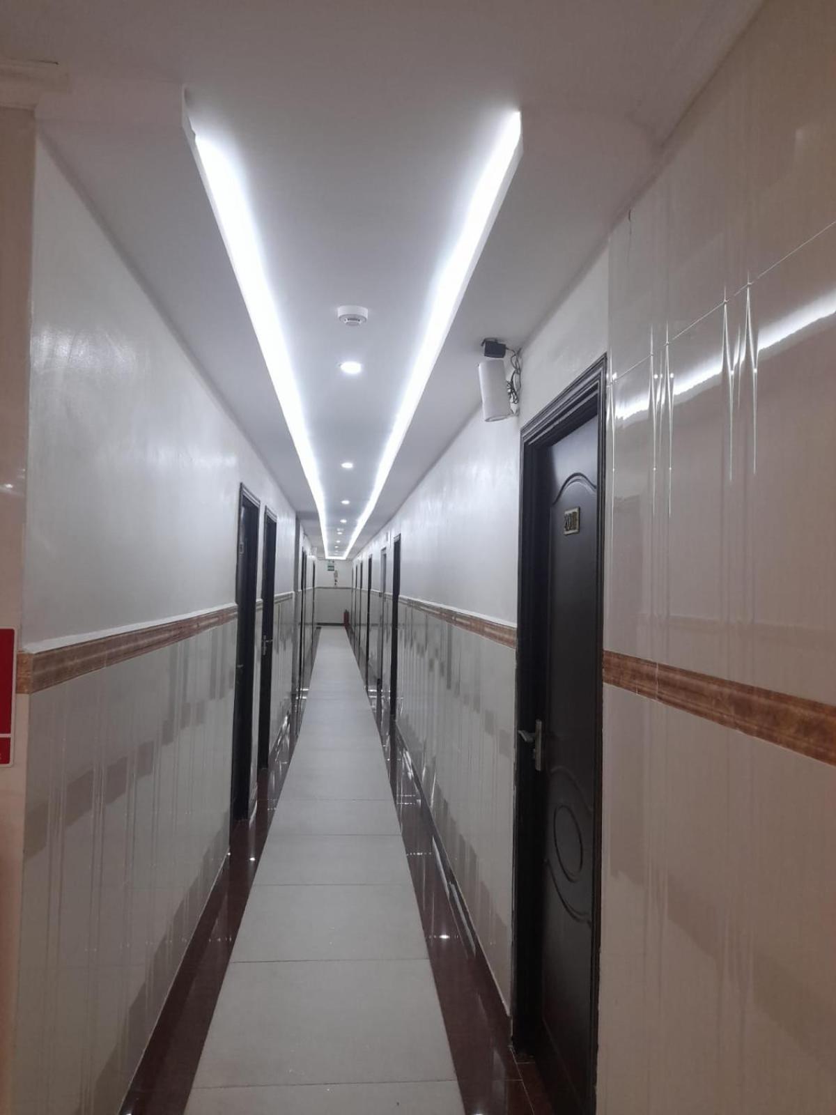 Hôtel en chantier (entreposage matériaux dans les couloirs)