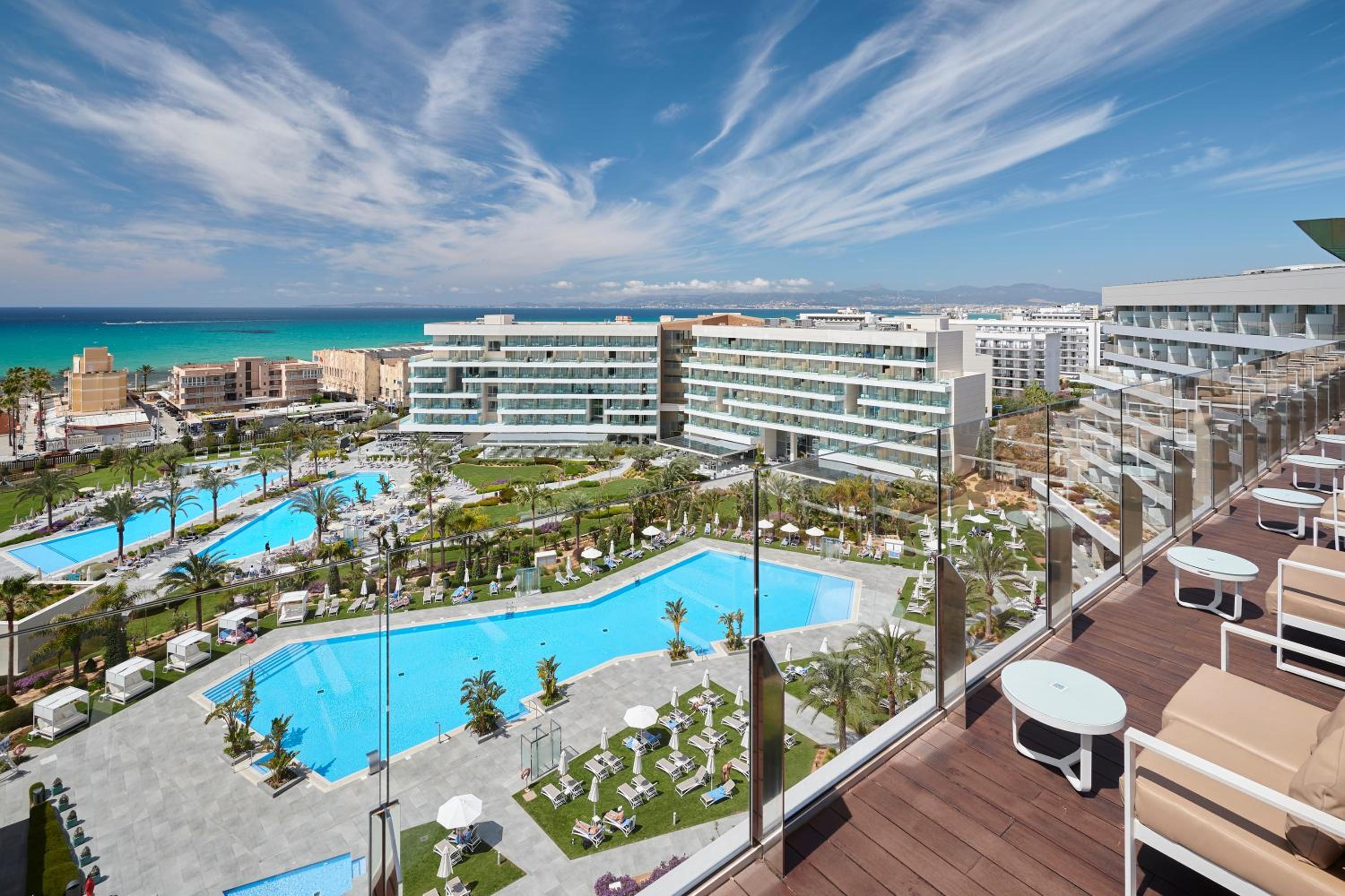 Hipotels Playa de Palma Palace & Spa offers spacious rooms with balconies, flat-screen TVs, and modern amenities. Upgrade to rooms with sea or pool views for a touch of luxury.