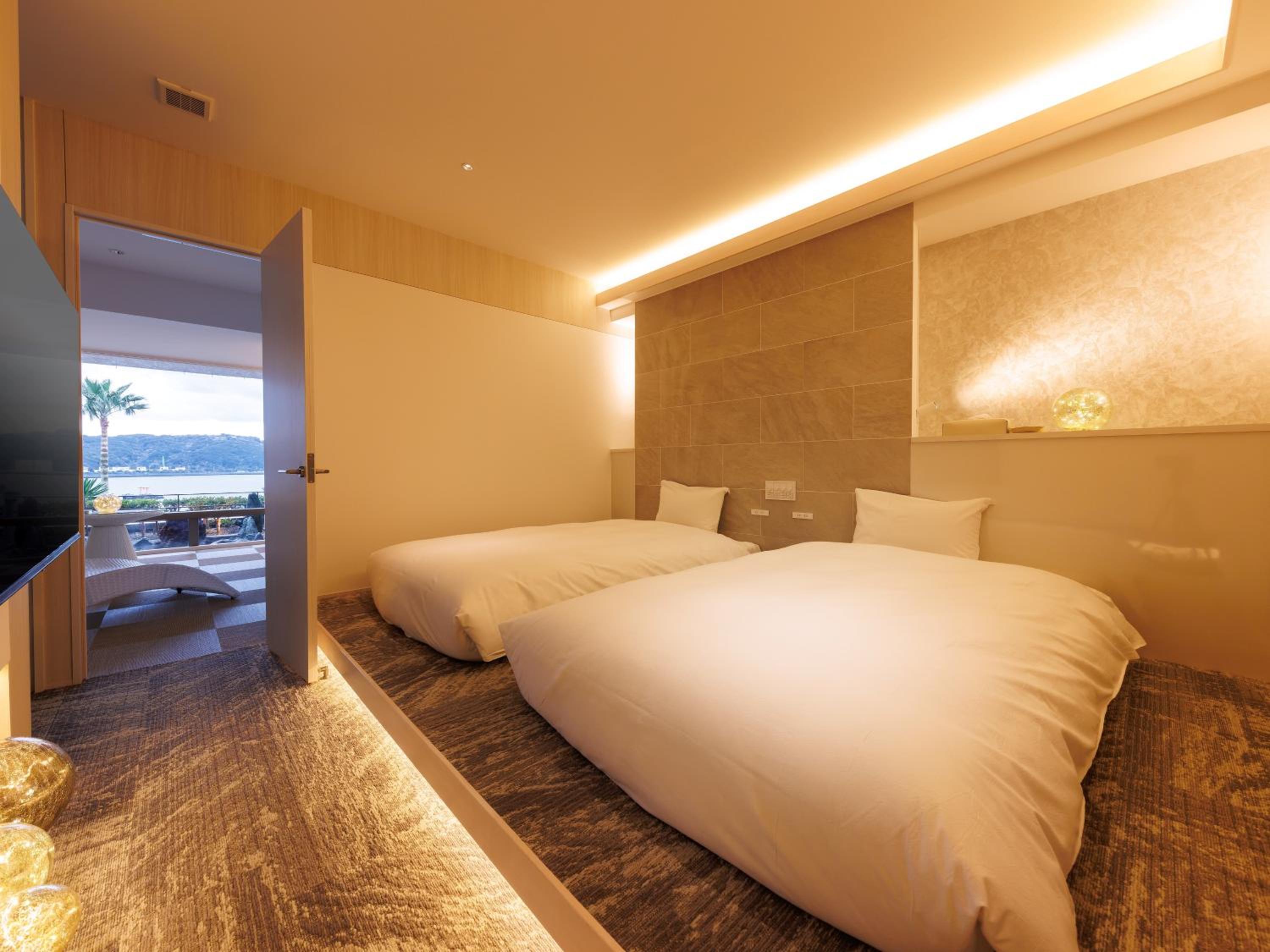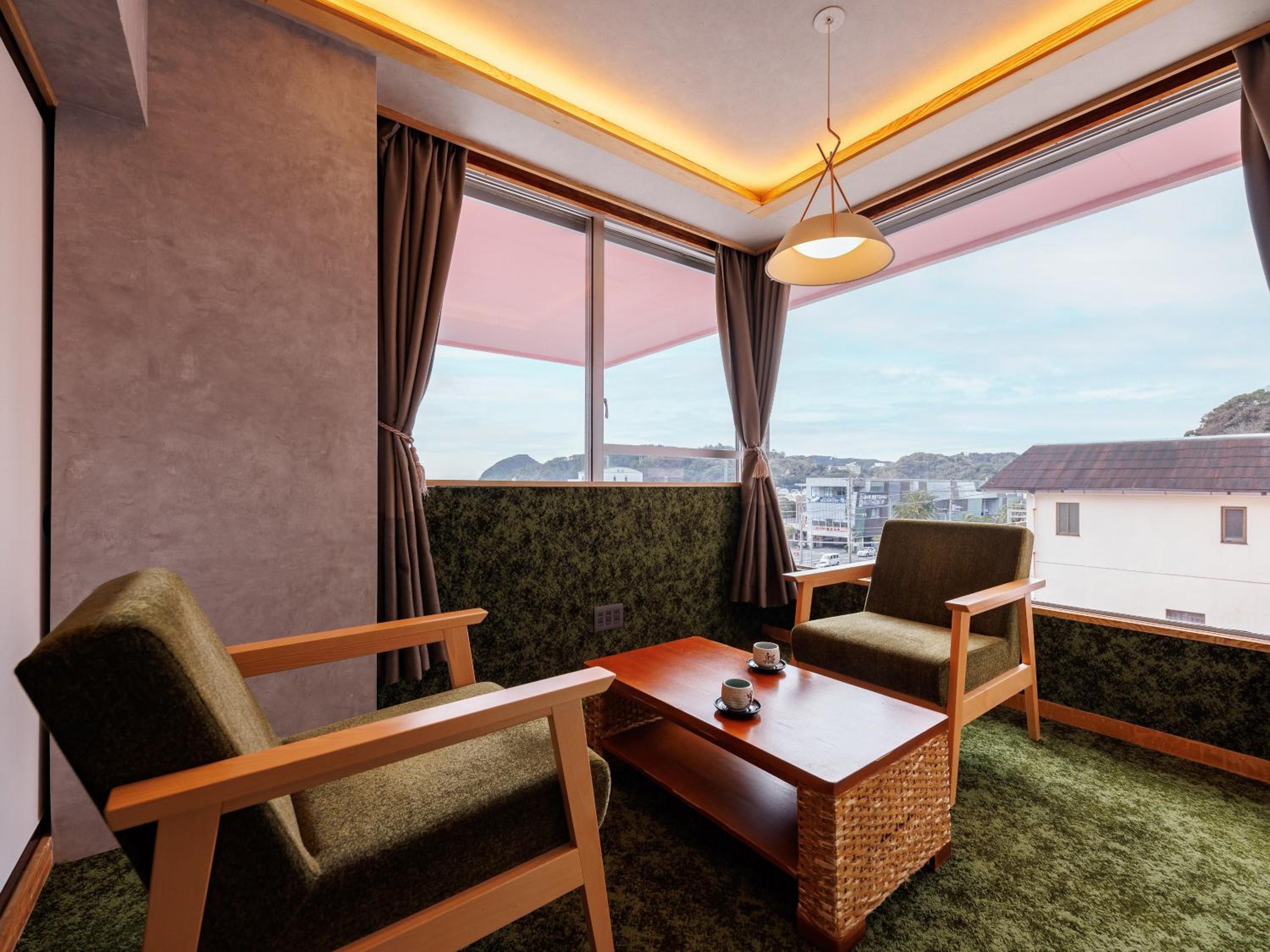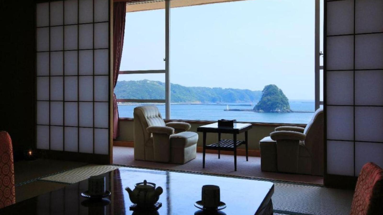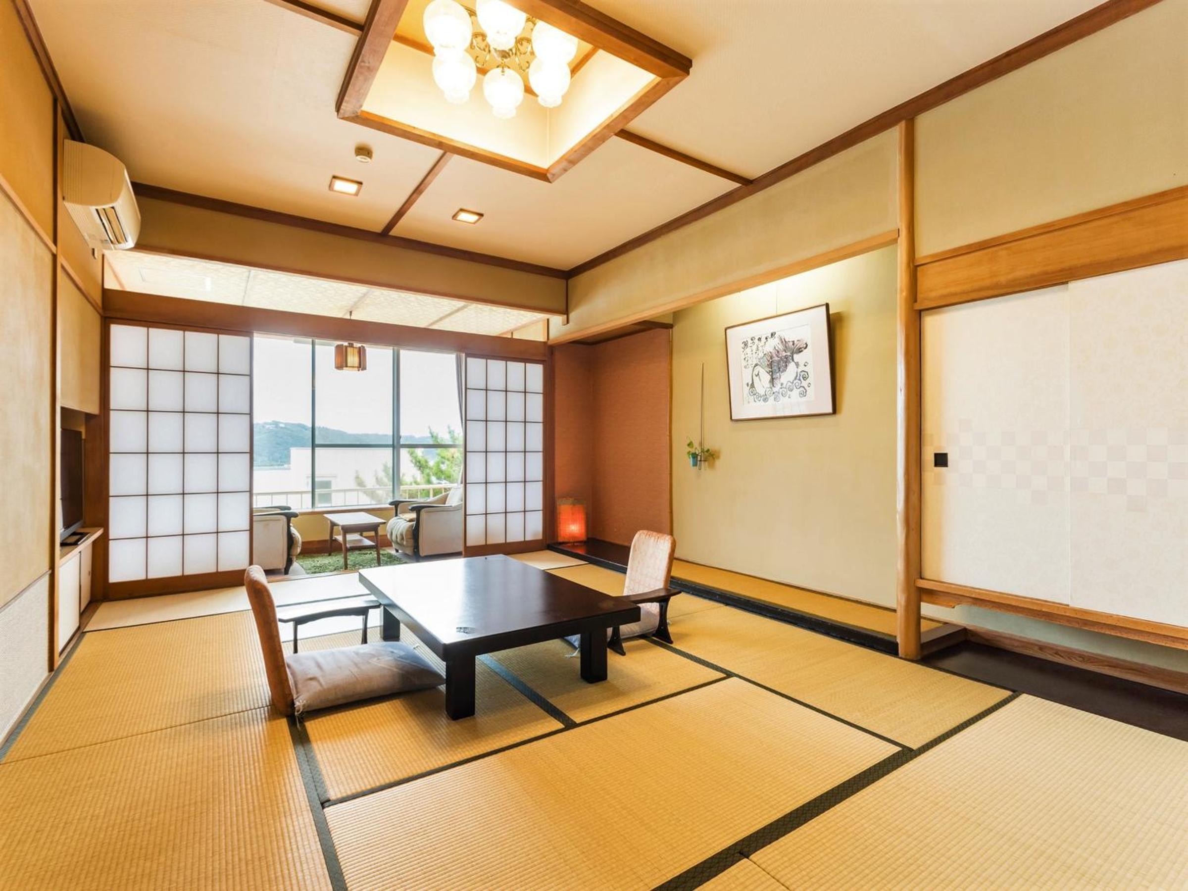 Experience traditional Japanese hospitality at Kurofune Hotel, offering spacious rooms with tatami flooring and stunning sea or mountain views. Enjoy the comfort of Japanese futon beds and a private en suite bathroom with a bathtub.