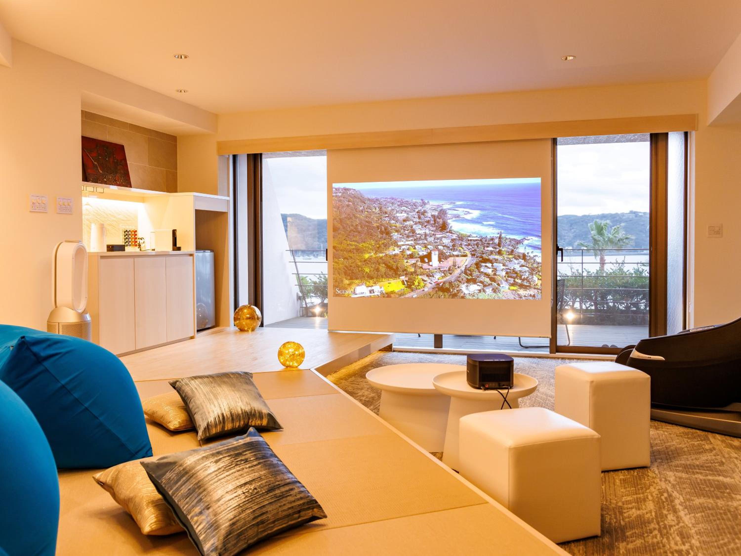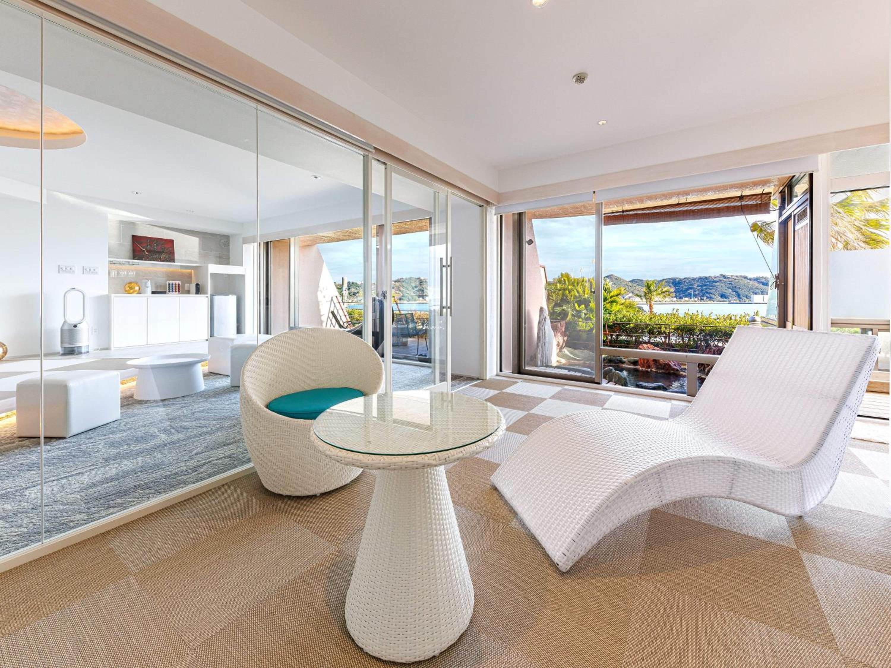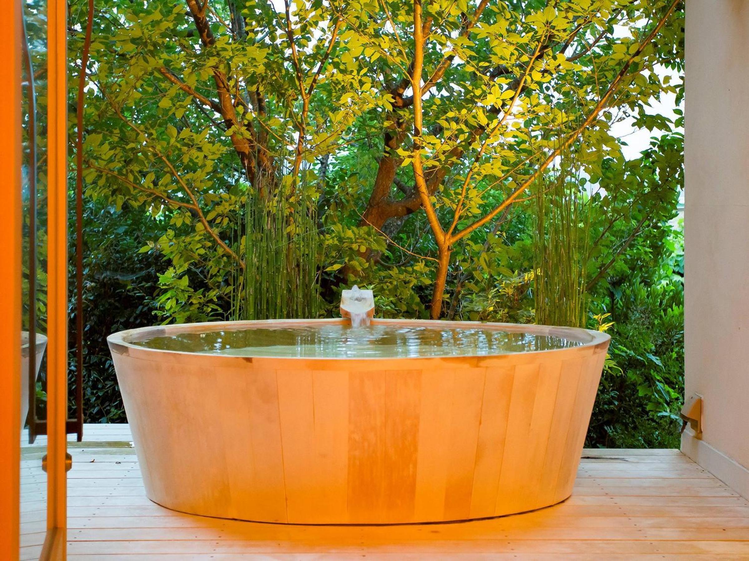 The Japanese style room with open-air bath was beautiful. It was the largest and most well-appointed room we stayed in during our trip. The view from the bath on the balcony was beautiful, we spent a lot of time soaking and enjoying the sun. The room was obviously prepared with care. All the staff members we encountered were friendly, polite and helpful. The room was peaceful and quiet. The retro feel of the hotel is honestly really fun. It felt like staying in the most glamorous version of the 80s.