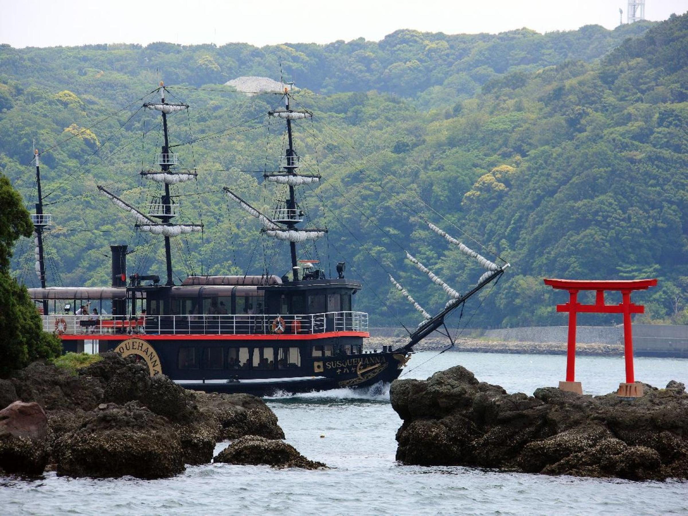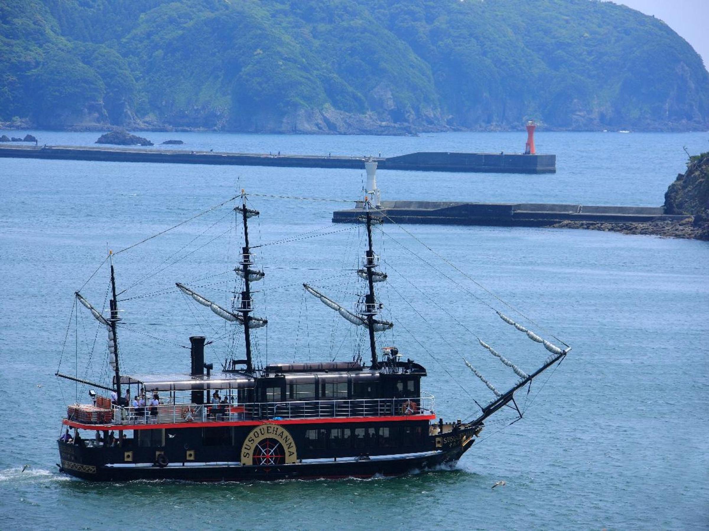 This hotel has a great view. I can see the sea and the black ship right from my hotel room. Very beautiful! First time to sleep in a traditional Japanese-style room, and very fun experience!