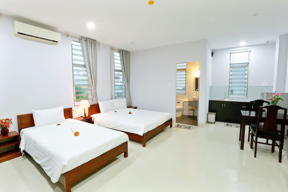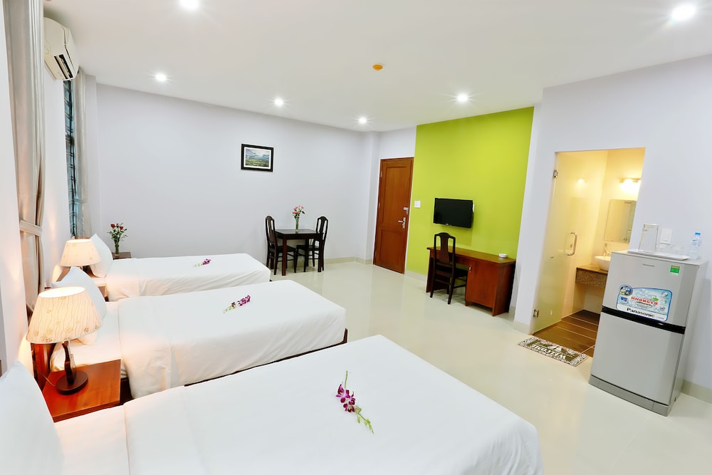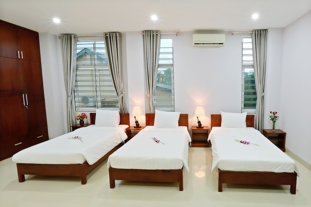 We only were at this 'hotel' for one night (thank god) - it was supposed to be a relaxing night close to the airport for an early flight the next morning - the reception was not particularly helpful - there was NO hot water either on arrival or the next morning - the bed was like sleeping on a plank, but not any plank - one wrapped in plastic!!! and then the crowning glory would have to have been the 2 minutes of church bells at 4:30 am - which then set off the local roosters so any chance of getting back to sleep was gone. Add to this the fact that breakfast at this hotel was 3 times the cost of any other hotel we stayed in during our stay in Vietnam (we declined the breakfast and got some fantastic fresh bread rolls at the bakery across the main road from the hotel). Overall very disappointed and would not recommend.